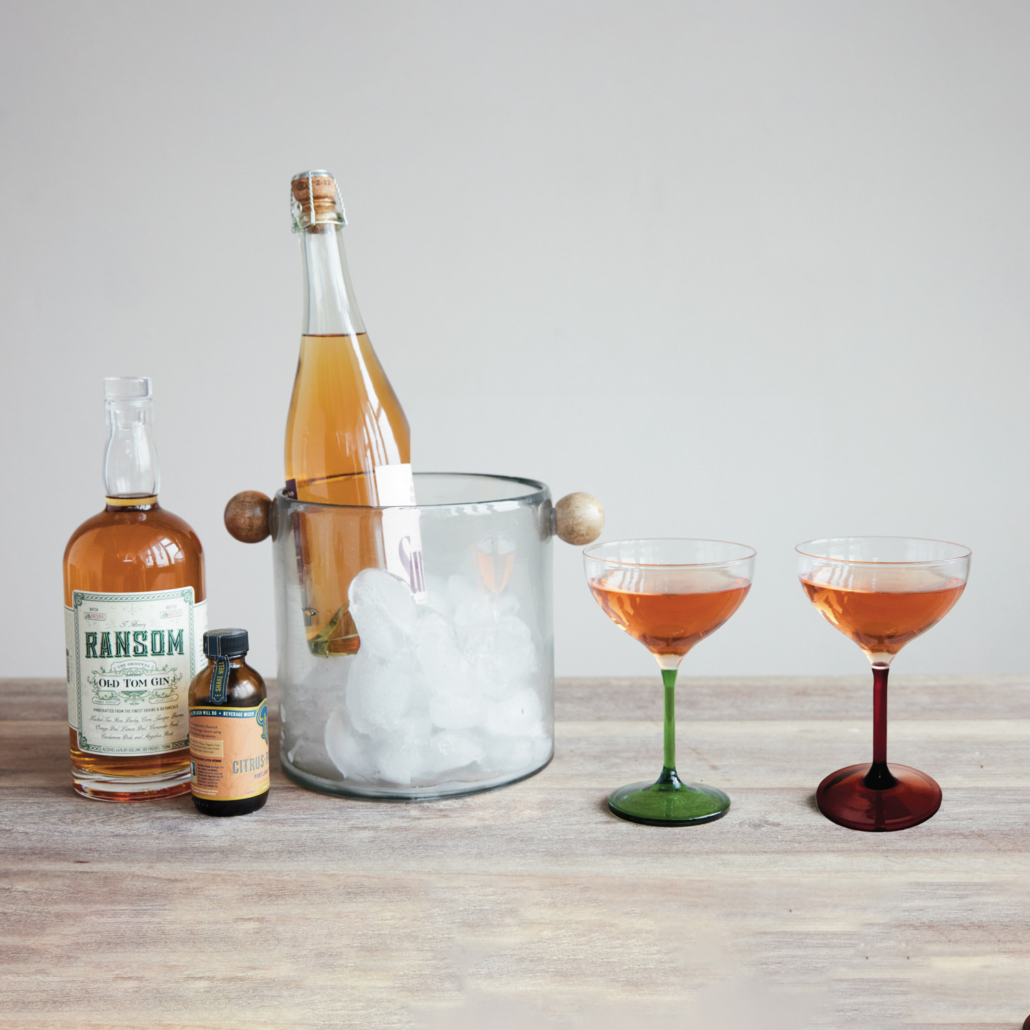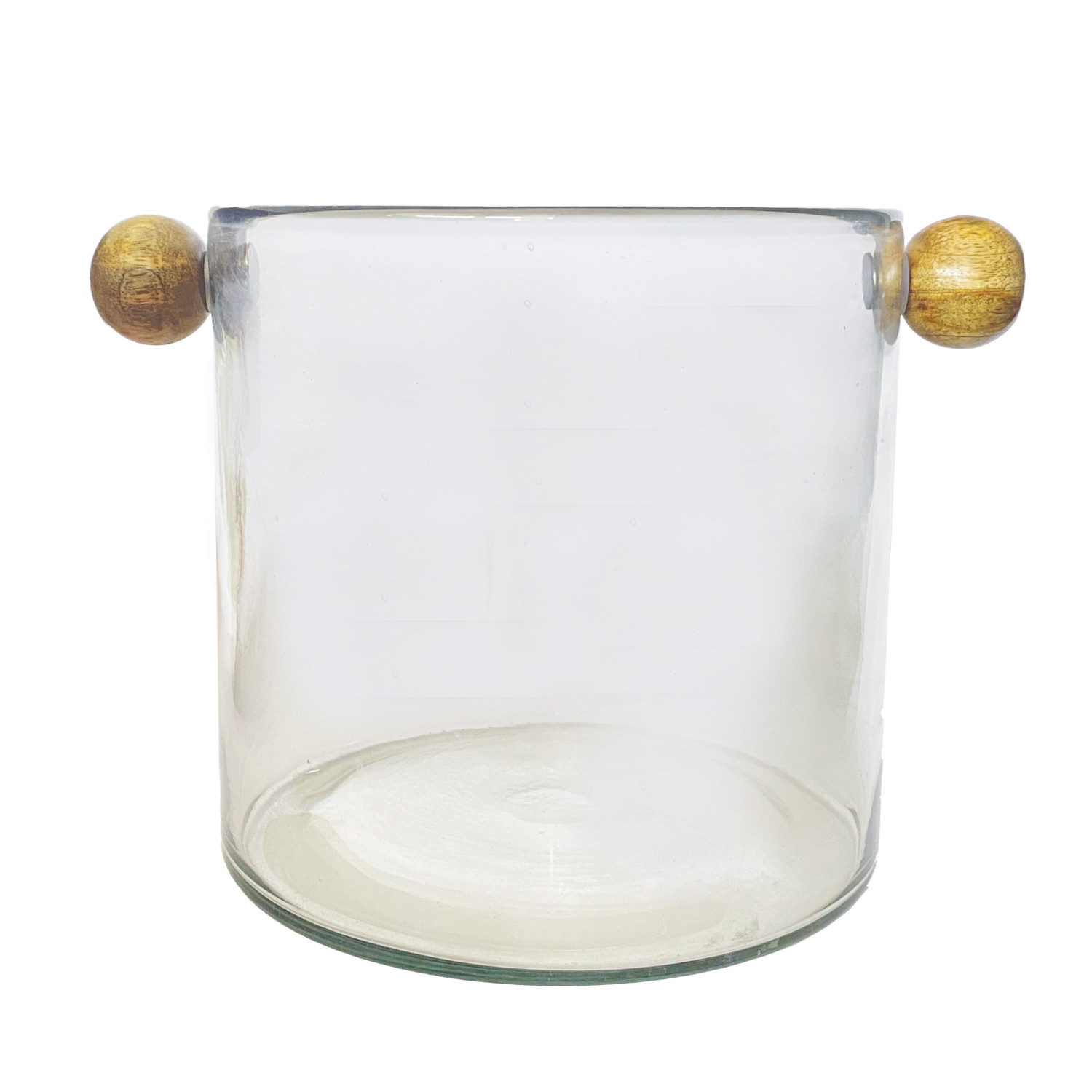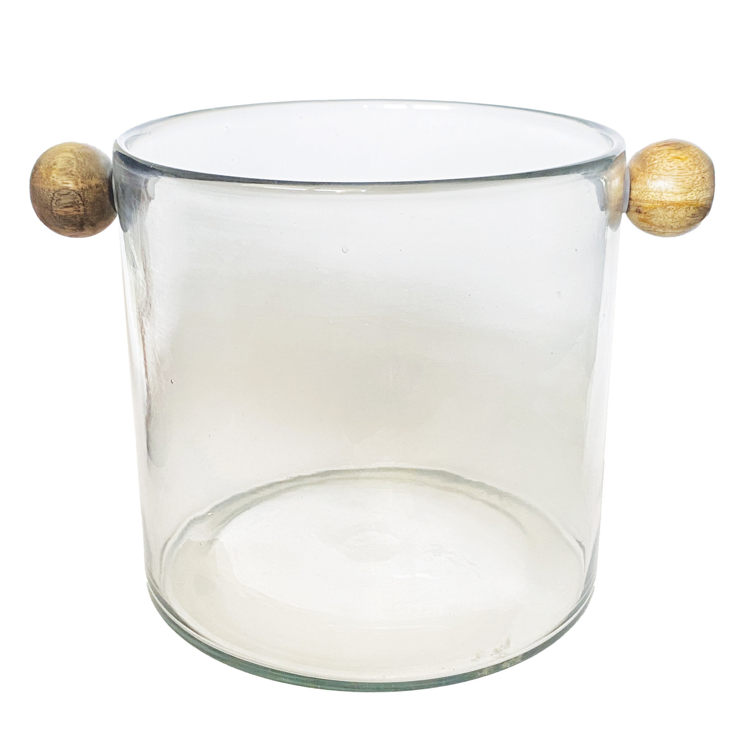 3-3/4 Quart Hand-Blown Glass Ice Bucket/Bottle Cooler with Natural Mango Wood Ball Handles
