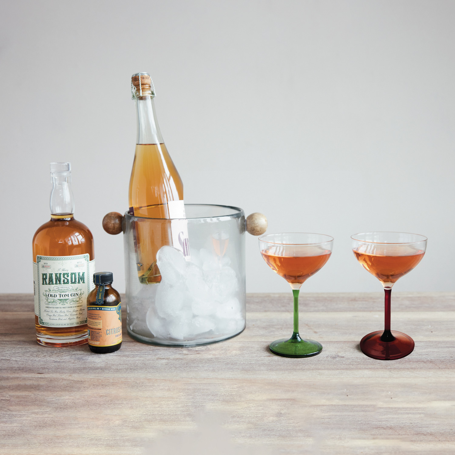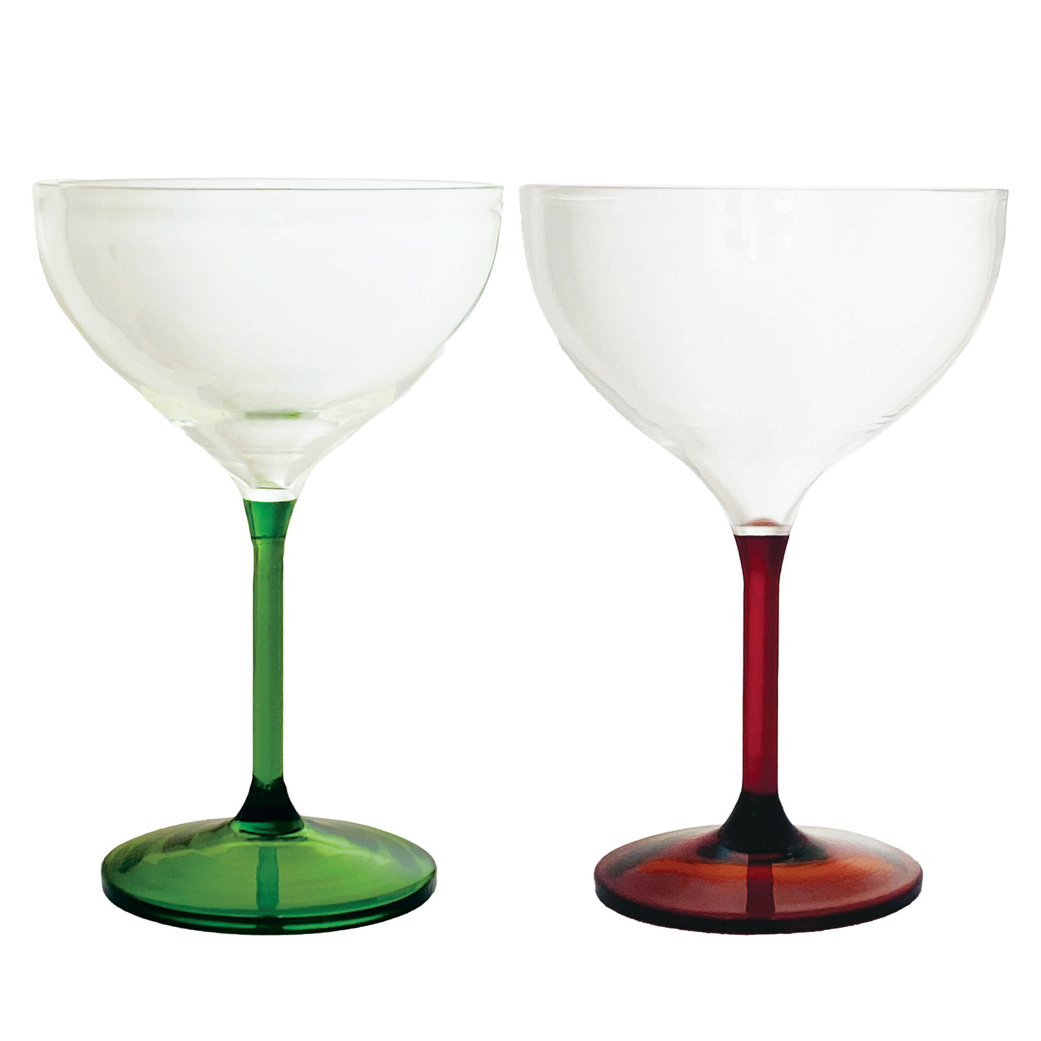 8 oz. Hand-Blown Coupe Glass with Colored Stem, 2 Colors