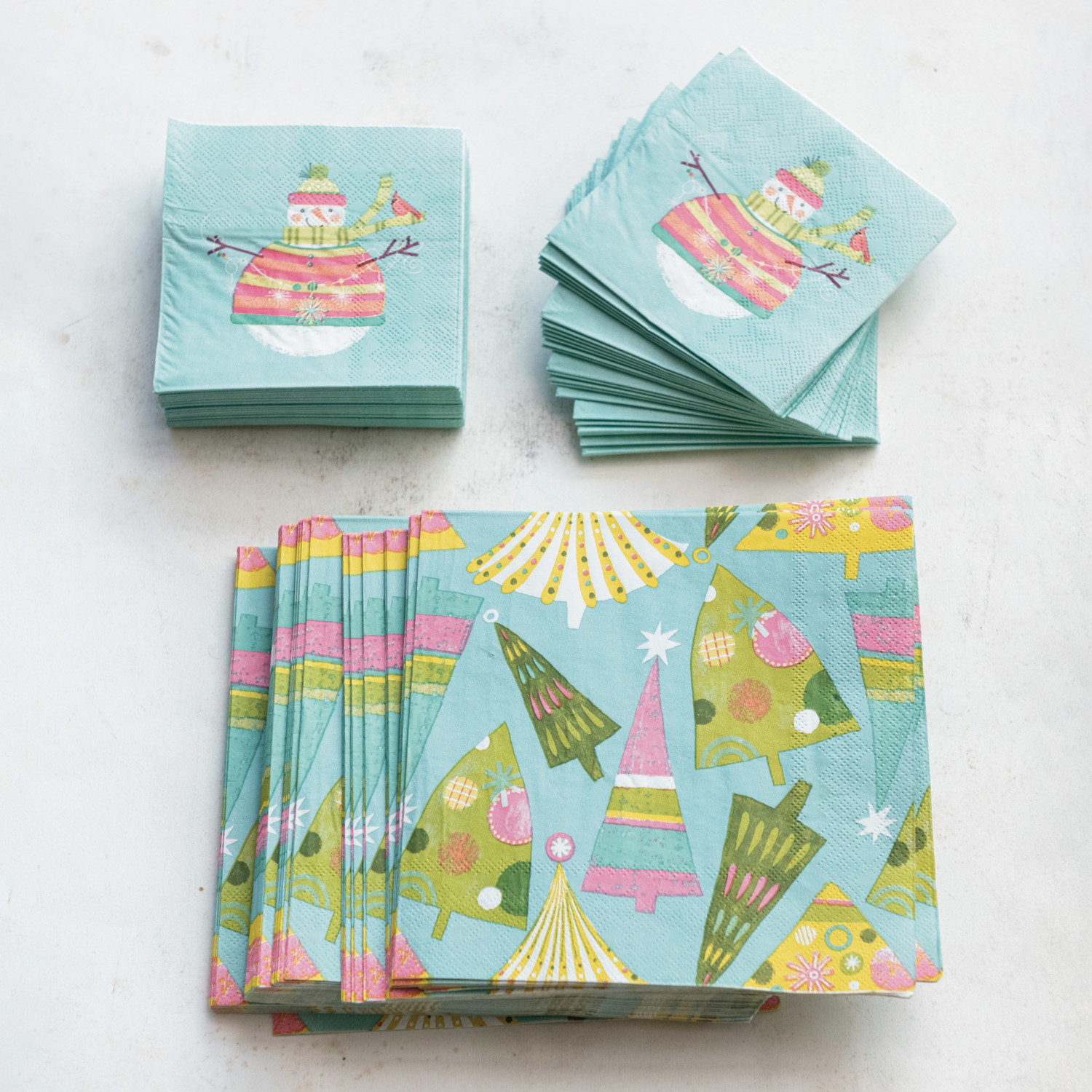 Paper Cocktail Napkins w/ Snowman, Multi Color (Contains 50 Folded Pieces) ©