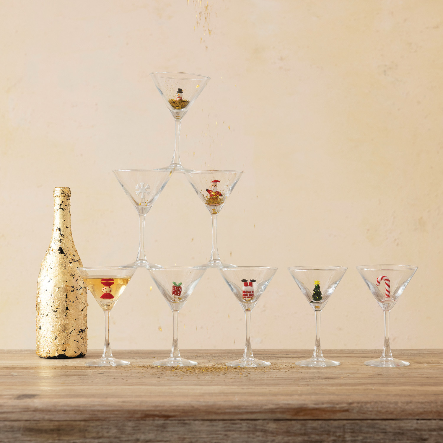 4 oz. Martini Glass with Hand-Blown Holiday Figure, 8 Styles