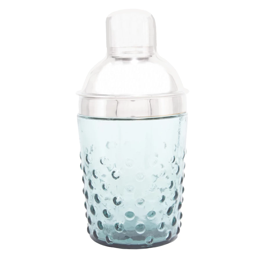 Catalog Name: 3-3/4" Round x 7-1/2"H 14 oz. Stainless Steel & Hand-Blown Glass Hobnail Cocktail Shaker, Aqua