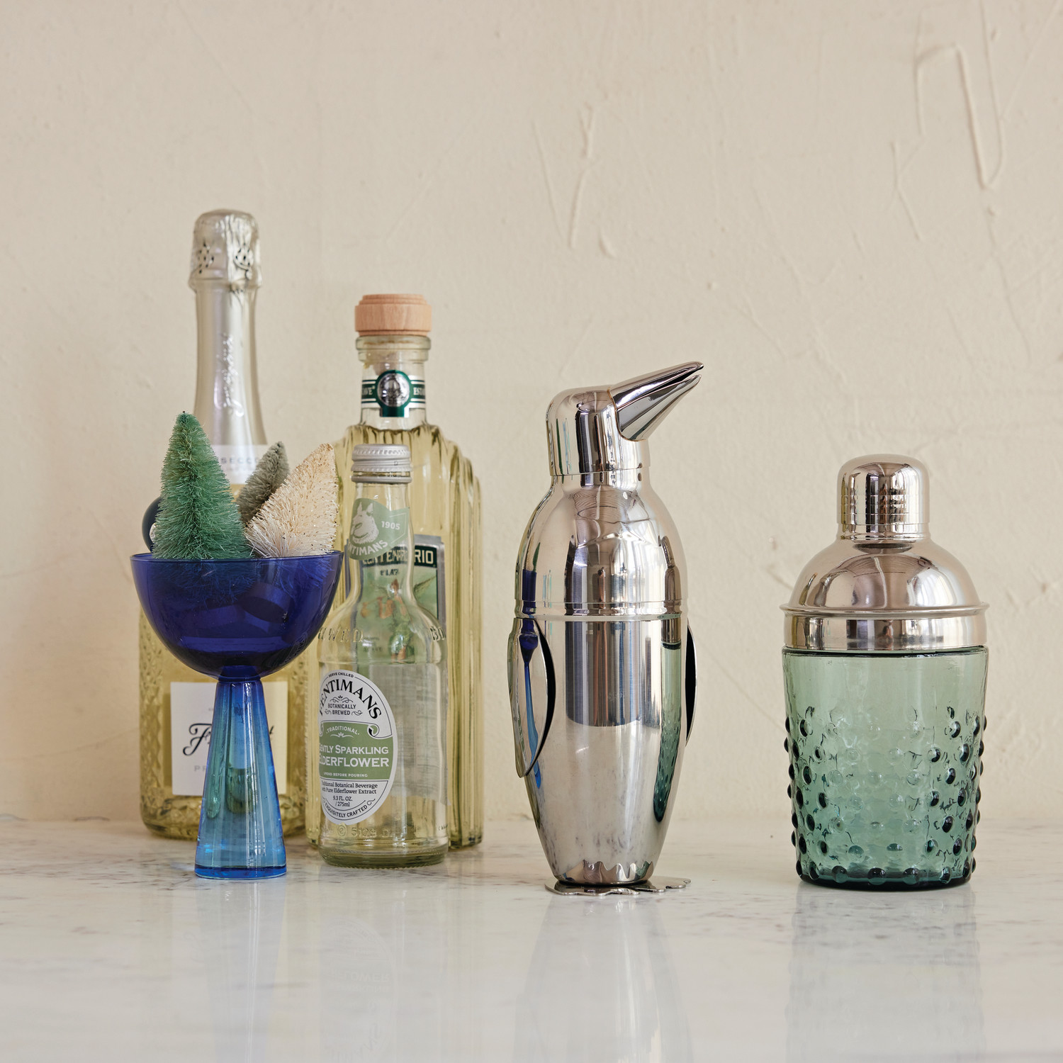 14 oz. Stainless Steel & Hand-Blown Glass Hobnail Cocktail Shaker