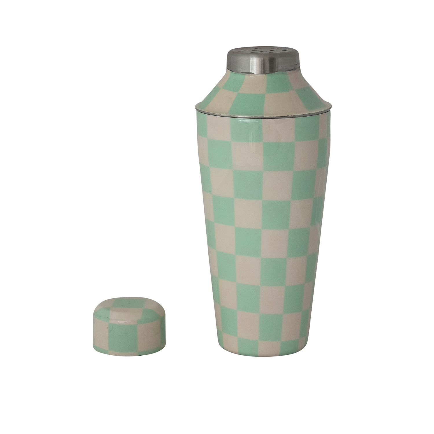 22 oz. Enameled Stainless Steel Cocktail Shaker with Check Pattern, Mint & Ivory Color