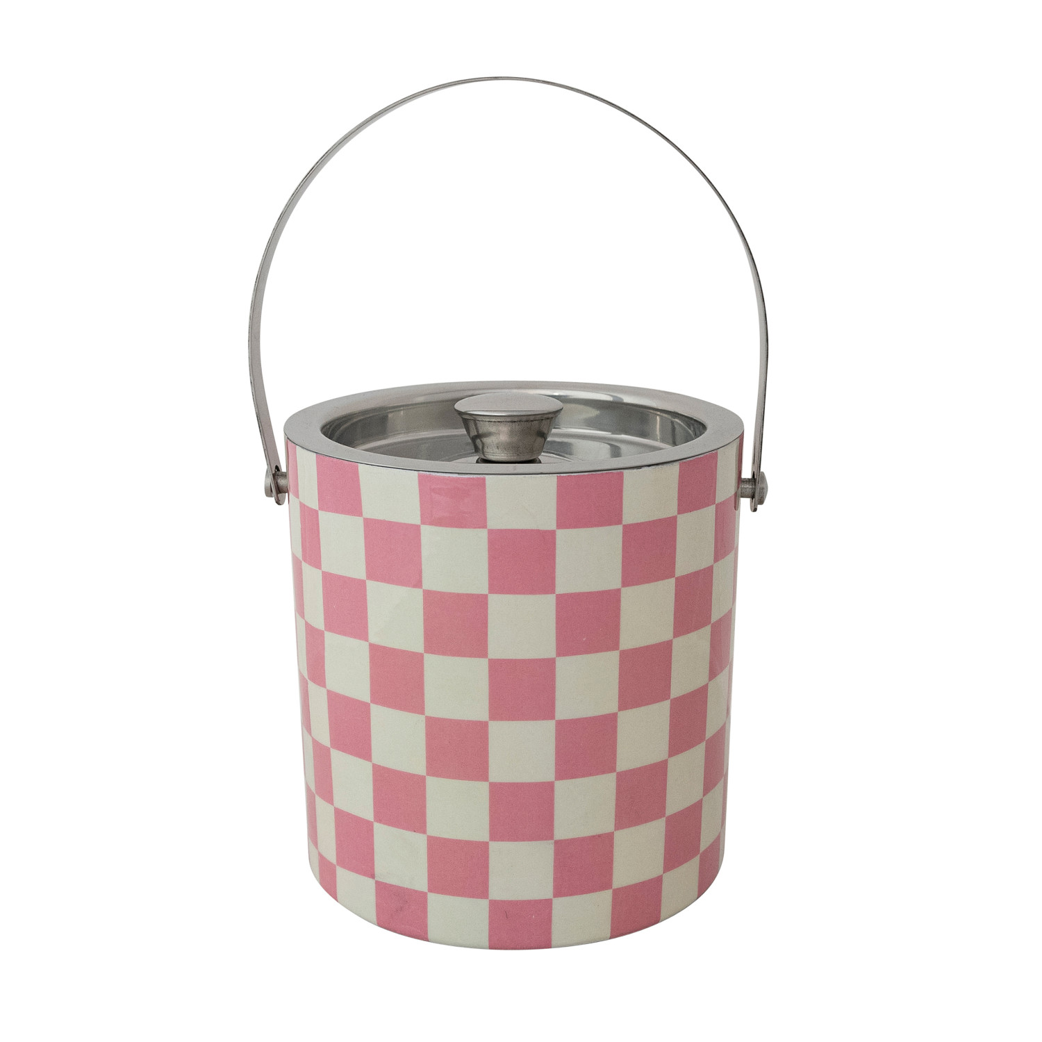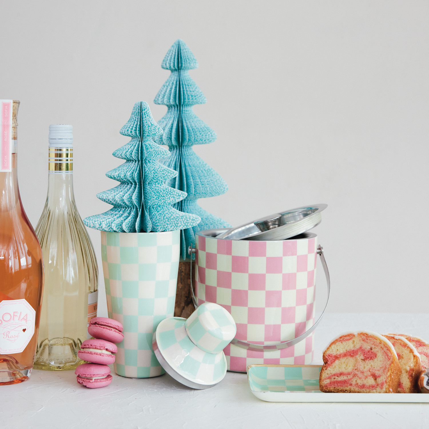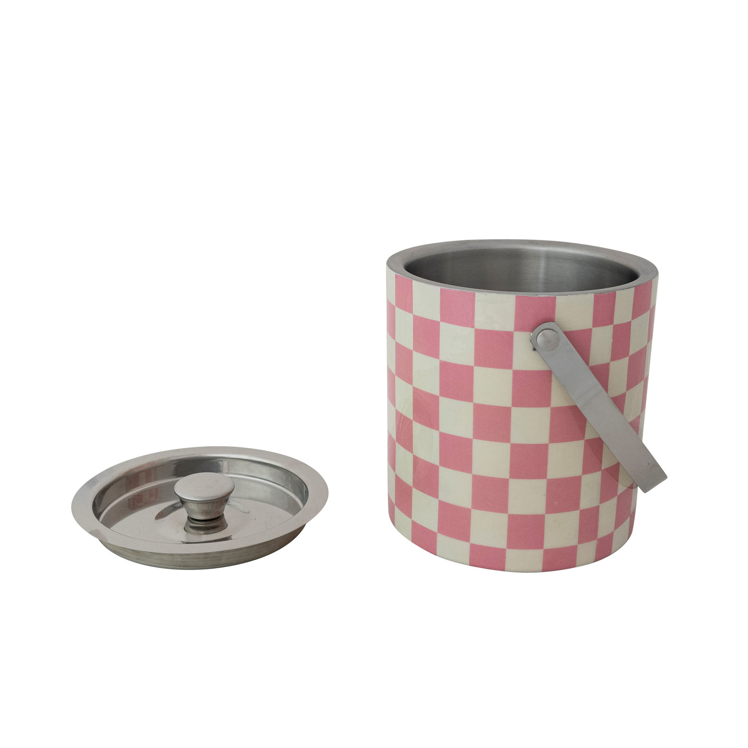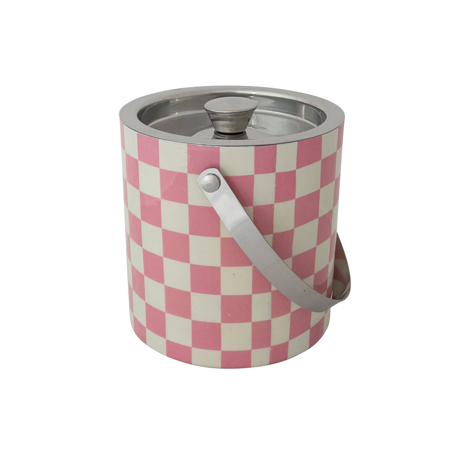 1-1/2 Quart Enameled Stainless Steel Ice Bucket with Check Pattern, Pink & Ivory Color