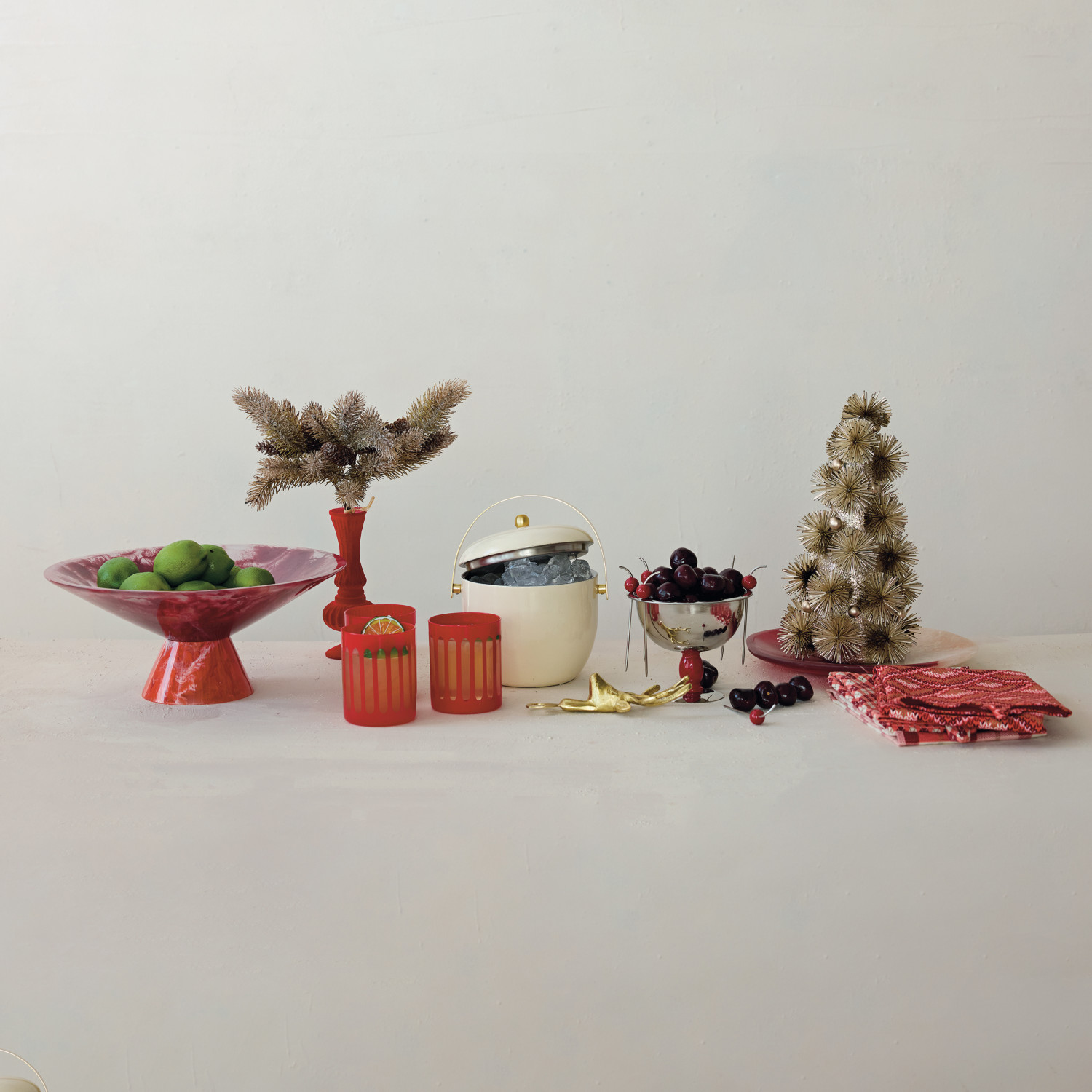 1-1/2 Quart Enameled Stainless Steel Ice Bucket with Gold Finish Knob & Handle