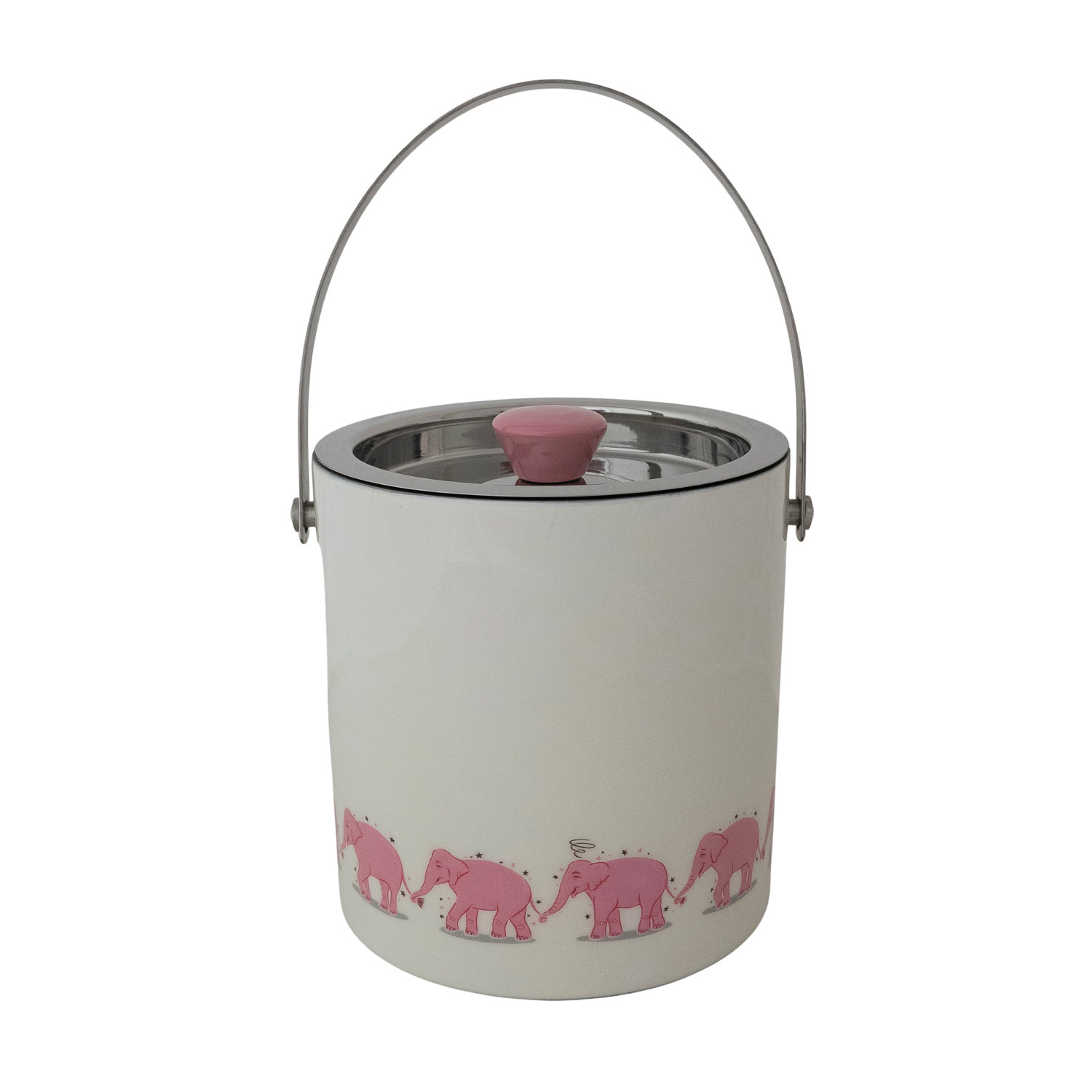 1-1/2 Quart Enameled Stainless Steel Ice Bucket with Pink Elephants & Knob & Nickel Finish ©