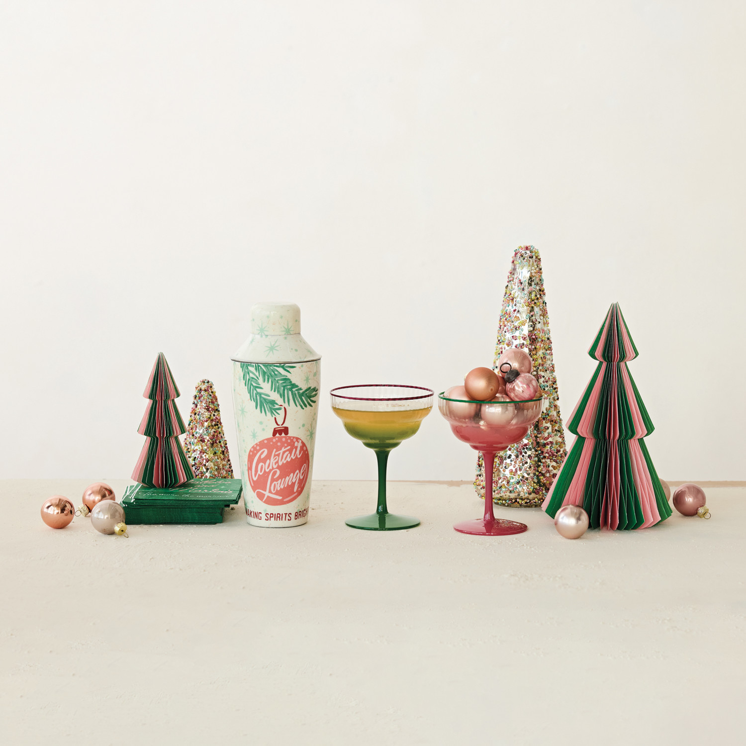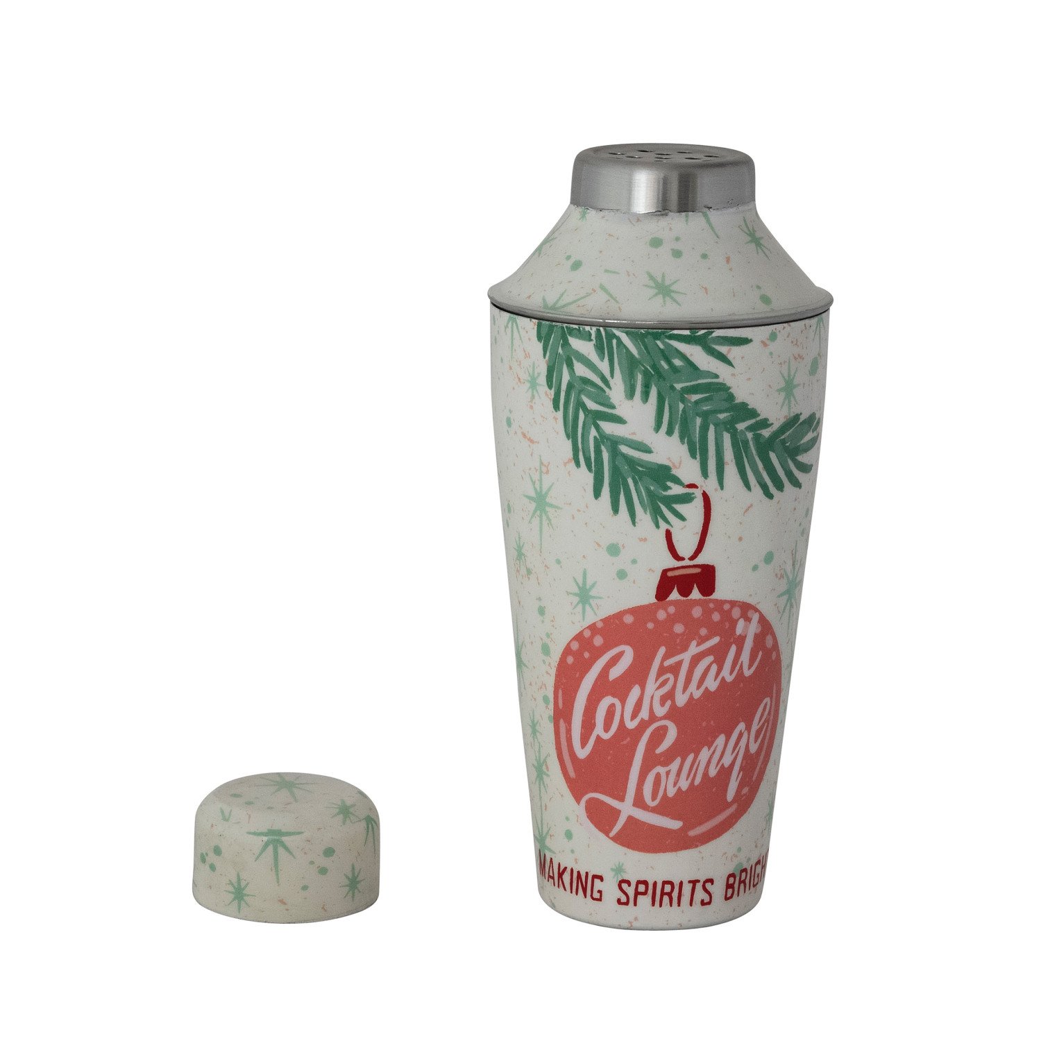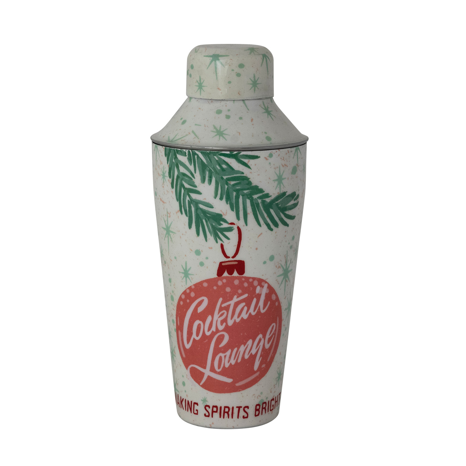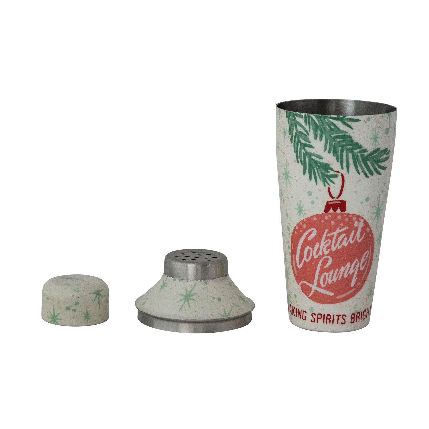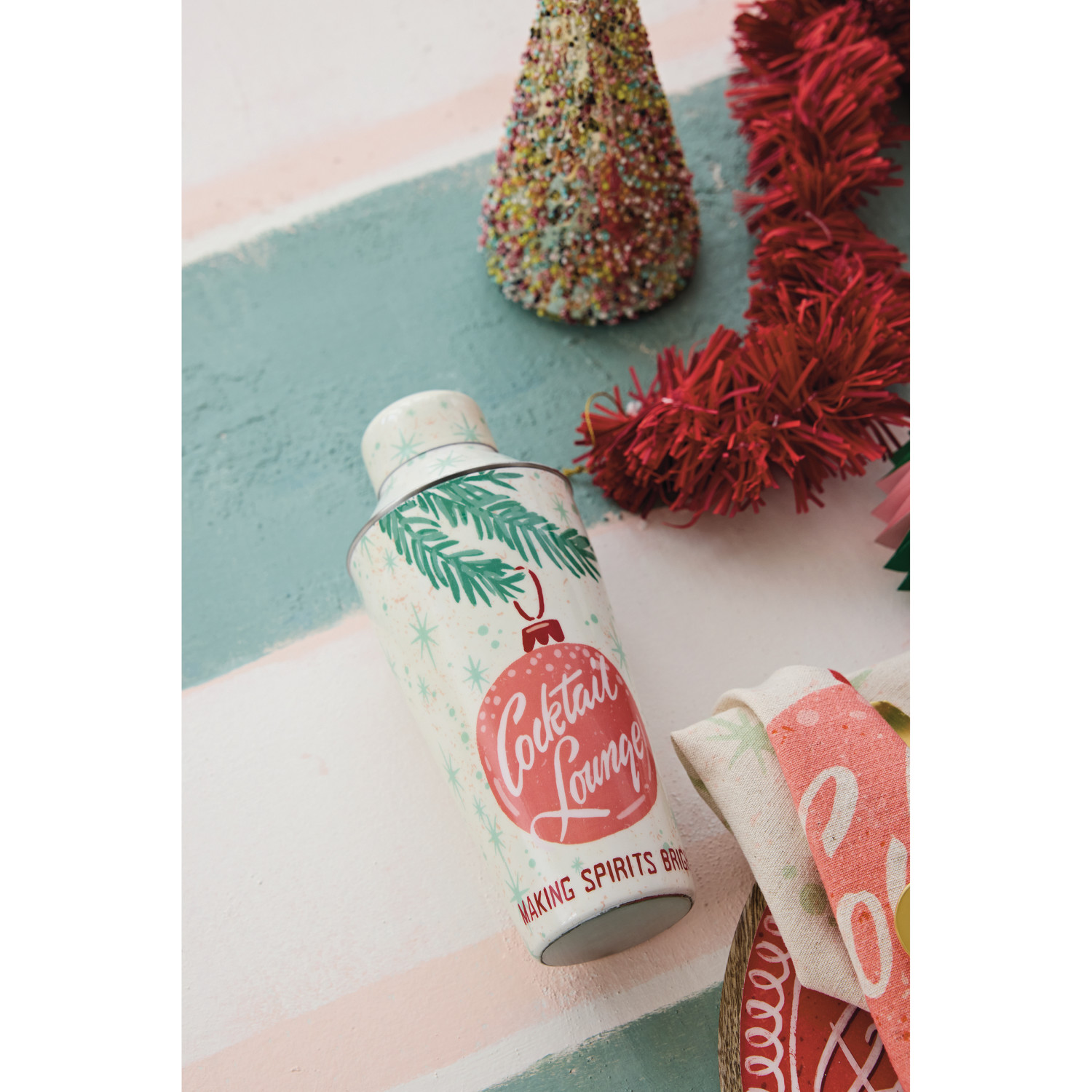 Catalog Name: 3-1/2" Round x 9"H 24 oz. Enameled Stainless Steel Cocktail Shaker w/ Snowflakes, Pine Bough & Ornament "Cocktail Lounge...", Multi Color ©