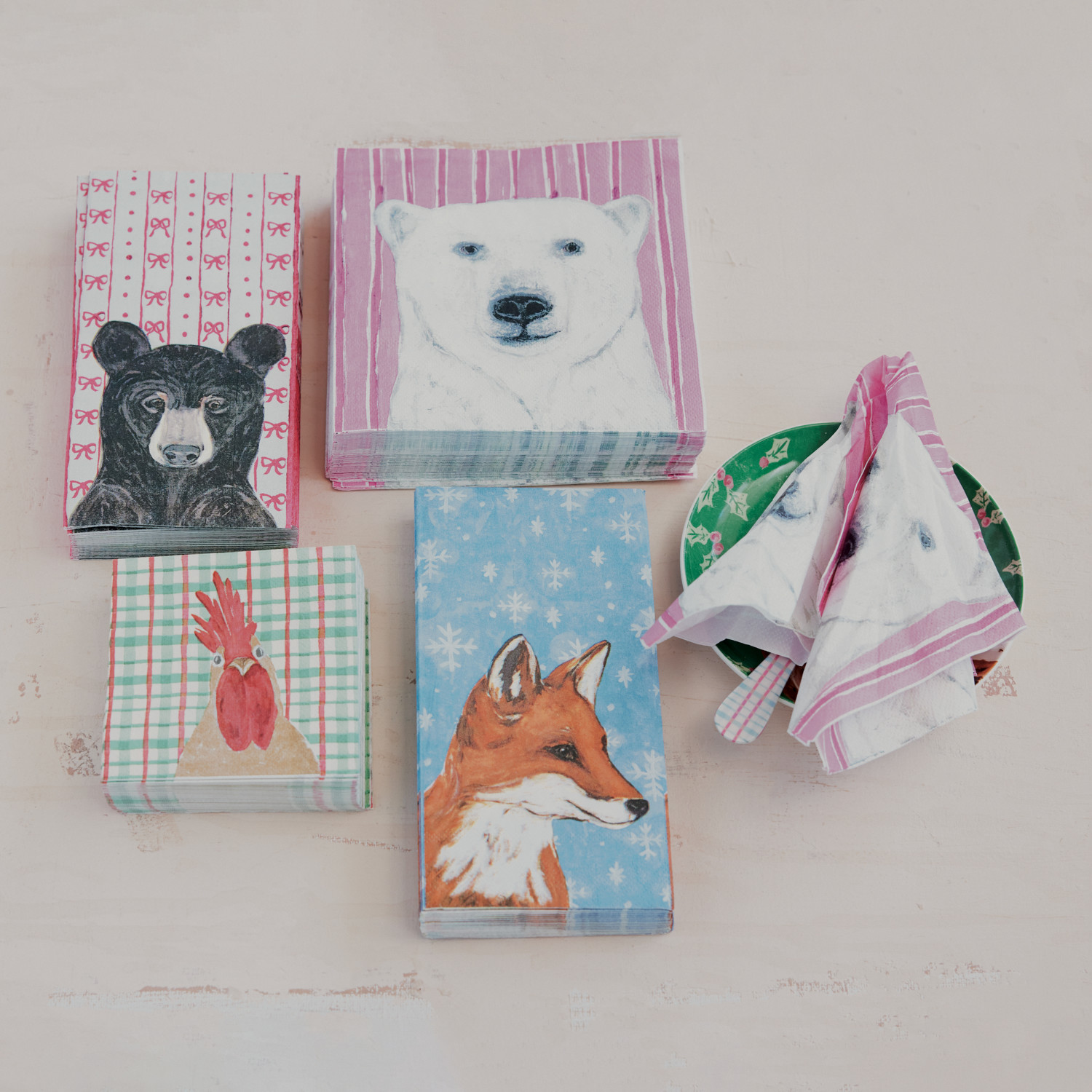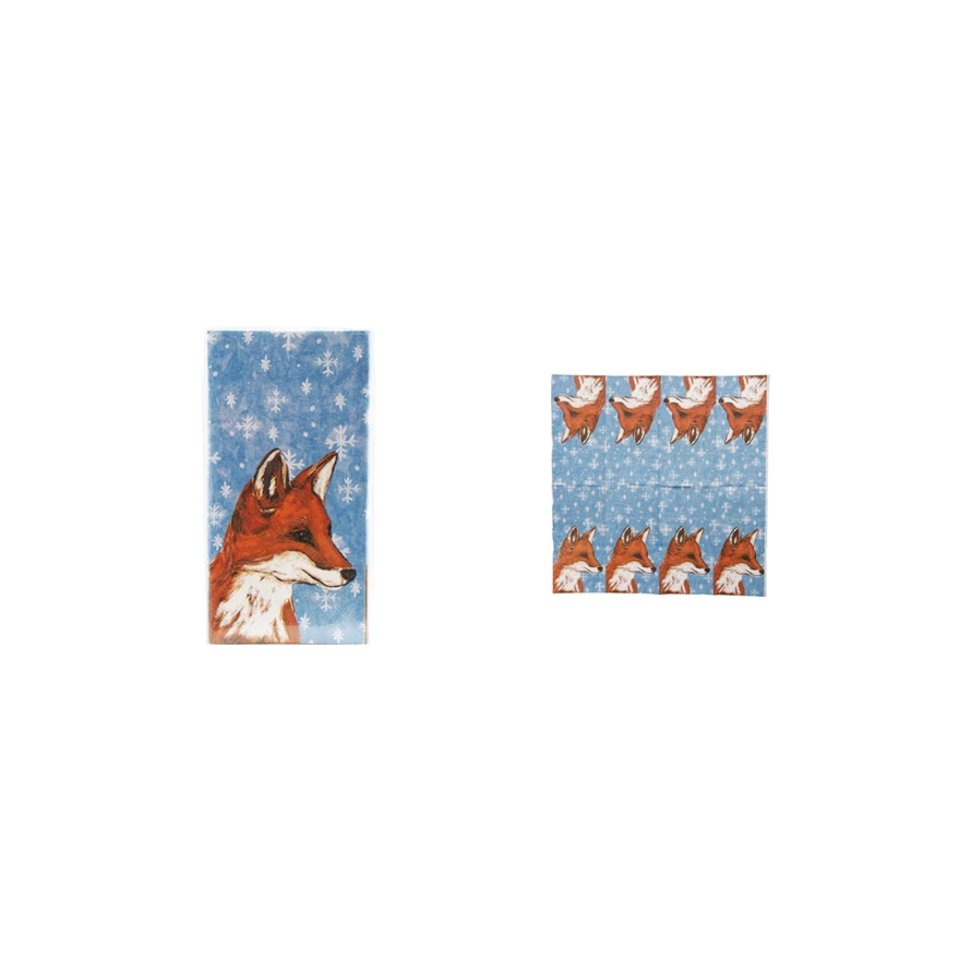 Paper Napkins with Holiday Pattern & Fox (Contains 20 Folded Pieces) ©