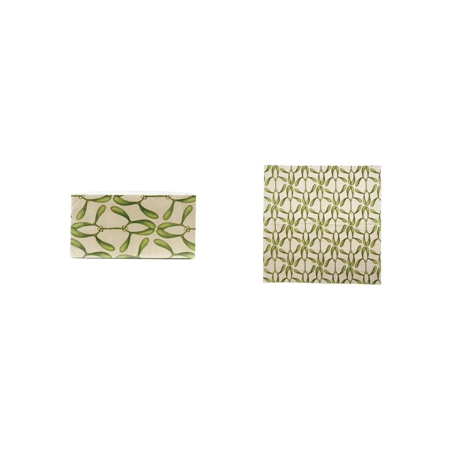 Catalog Name: 7-1/2"L x 4"W Paper Napkins w/ Mistletoe Pattern, Cream Color & Green (Contains 20 Folded Pieces) ©