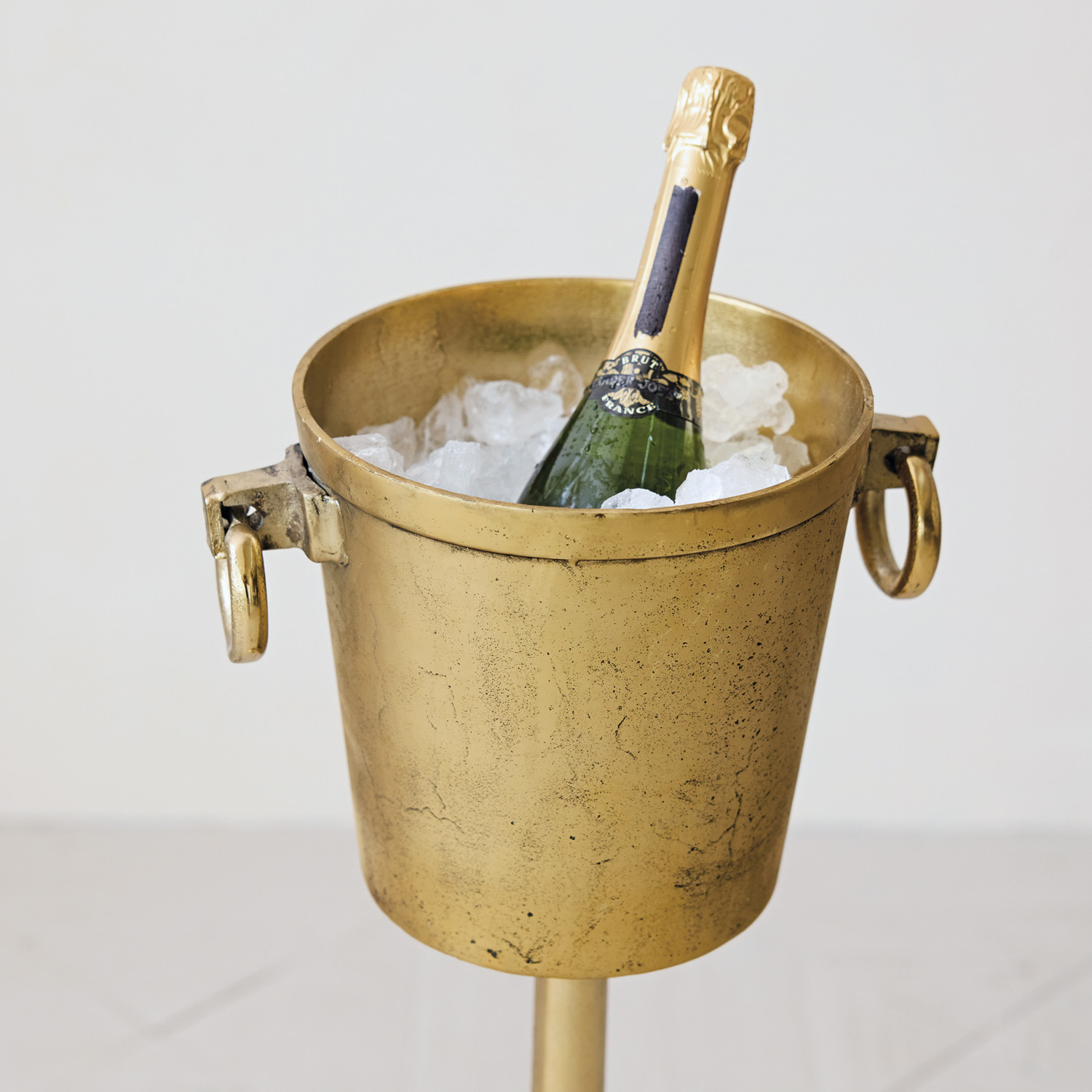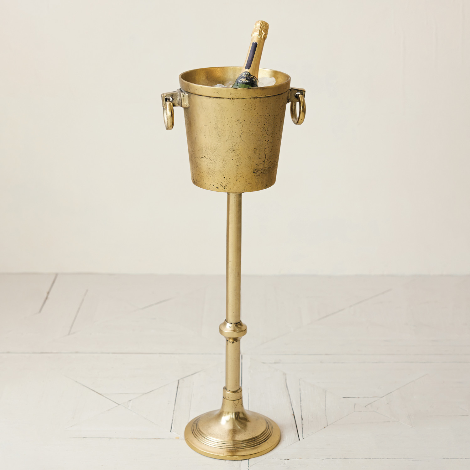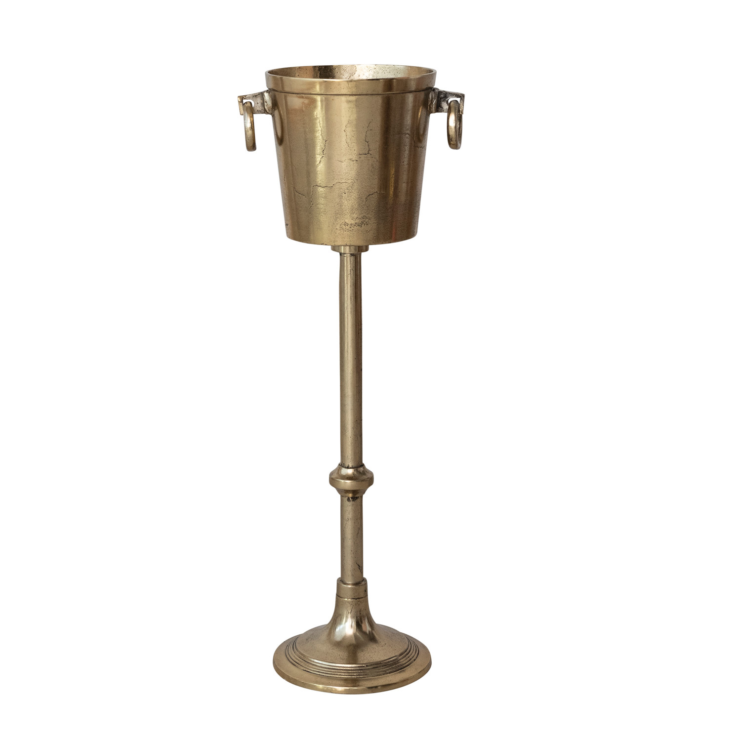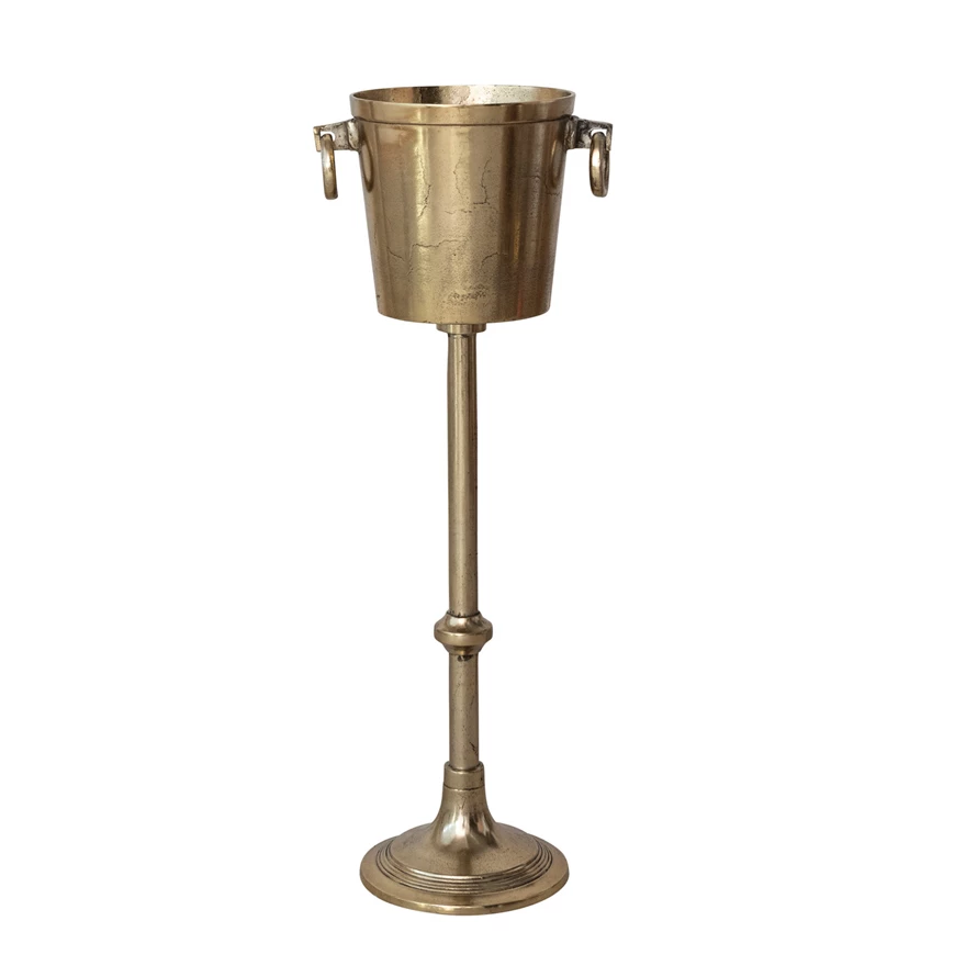 Catalog Name: 12-1/2"L x 9-1/2"W x 34"H 5-1/2 Quart Cast Aluminum Ice Bucket/Bottle Cooler w/ Ring Handles, Gold Finish, KD