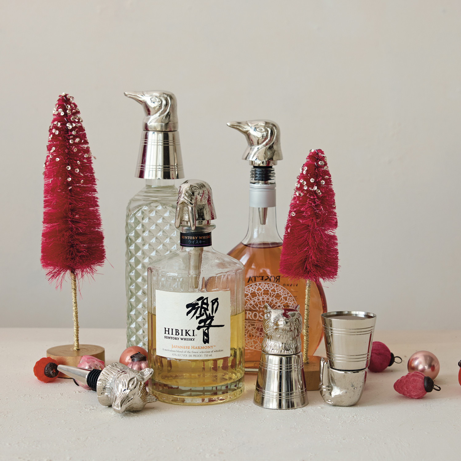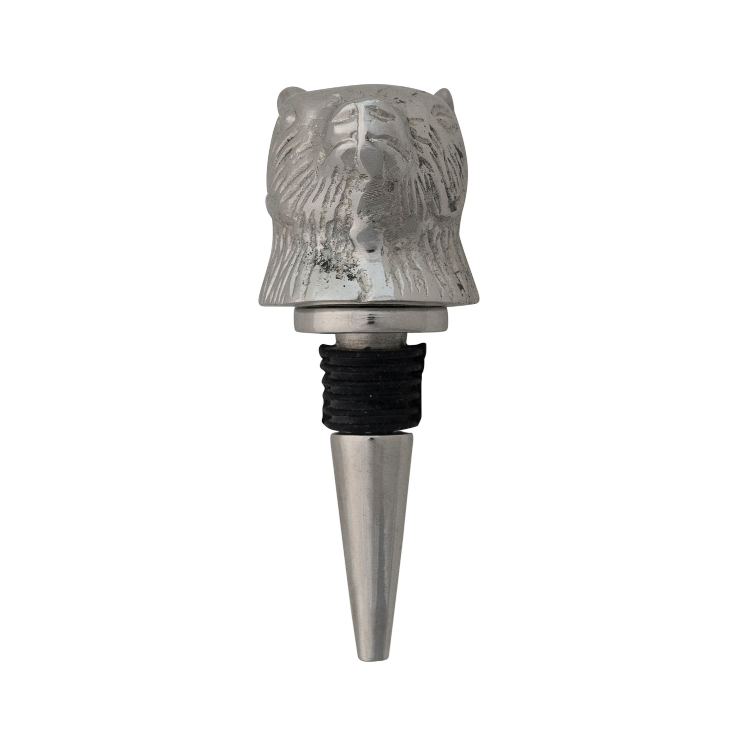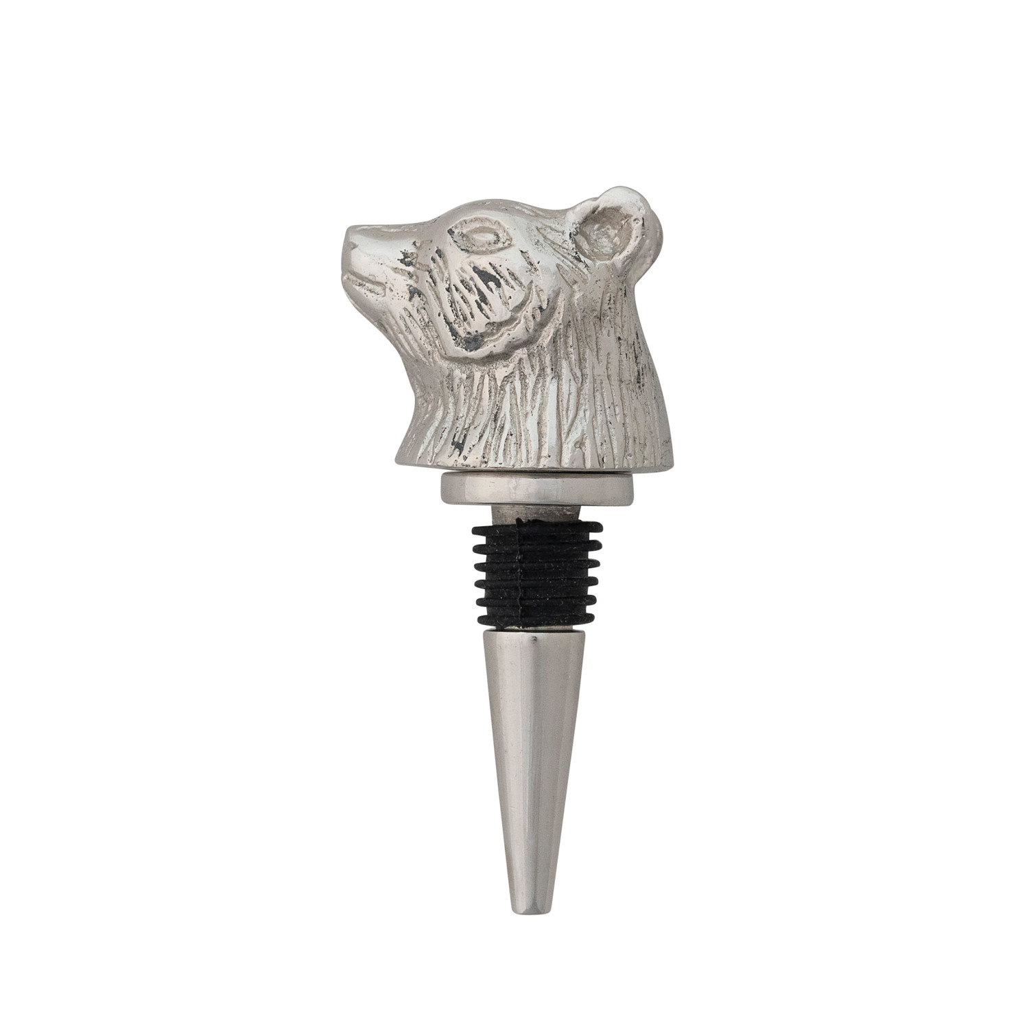 Catalog Name: 4-1/2"H Cast Aluminum Bear Head Bottle Stopper in Kraft Box, Nickel Finish