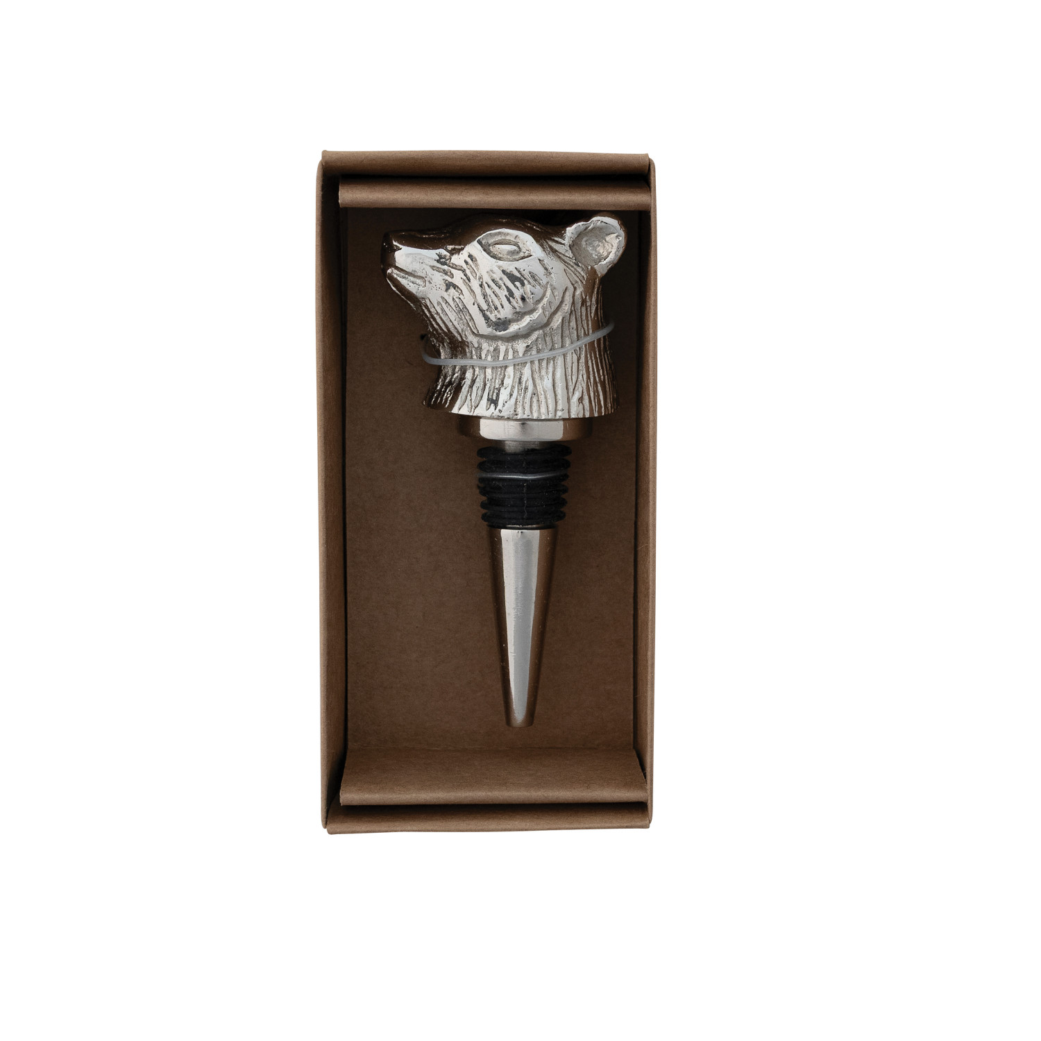 Cast Aluminum Bear Head Bottle Stopper in Kraft Box