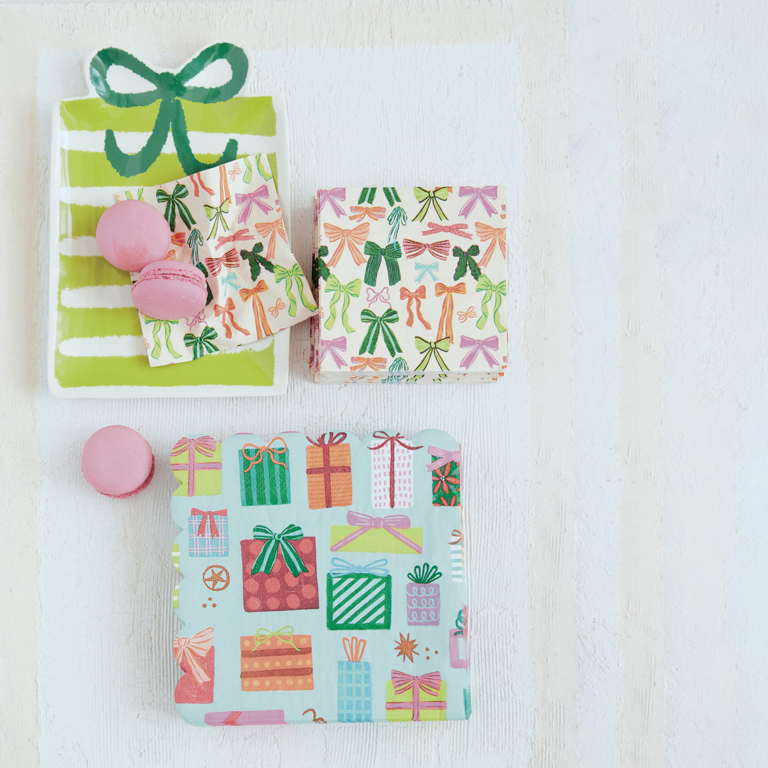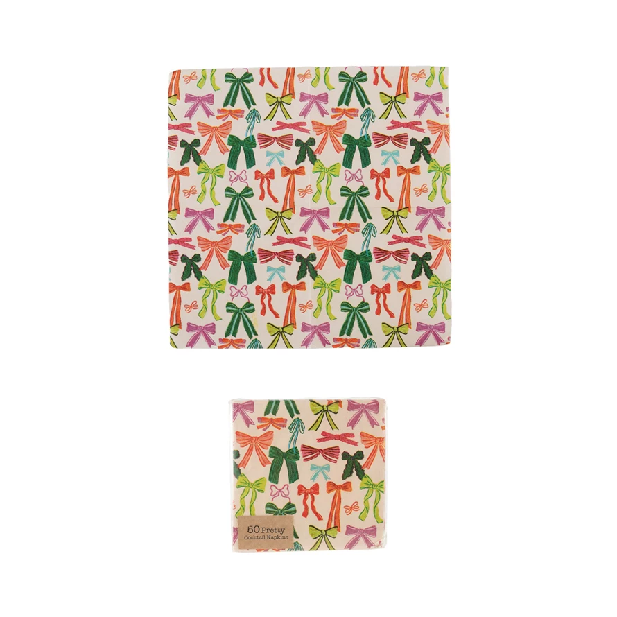 Catalog Name: 4" Square Paper Cocktail Napkins w/ Bow Pattern, Multi Color (Contains 50 Folded Pieces) ©