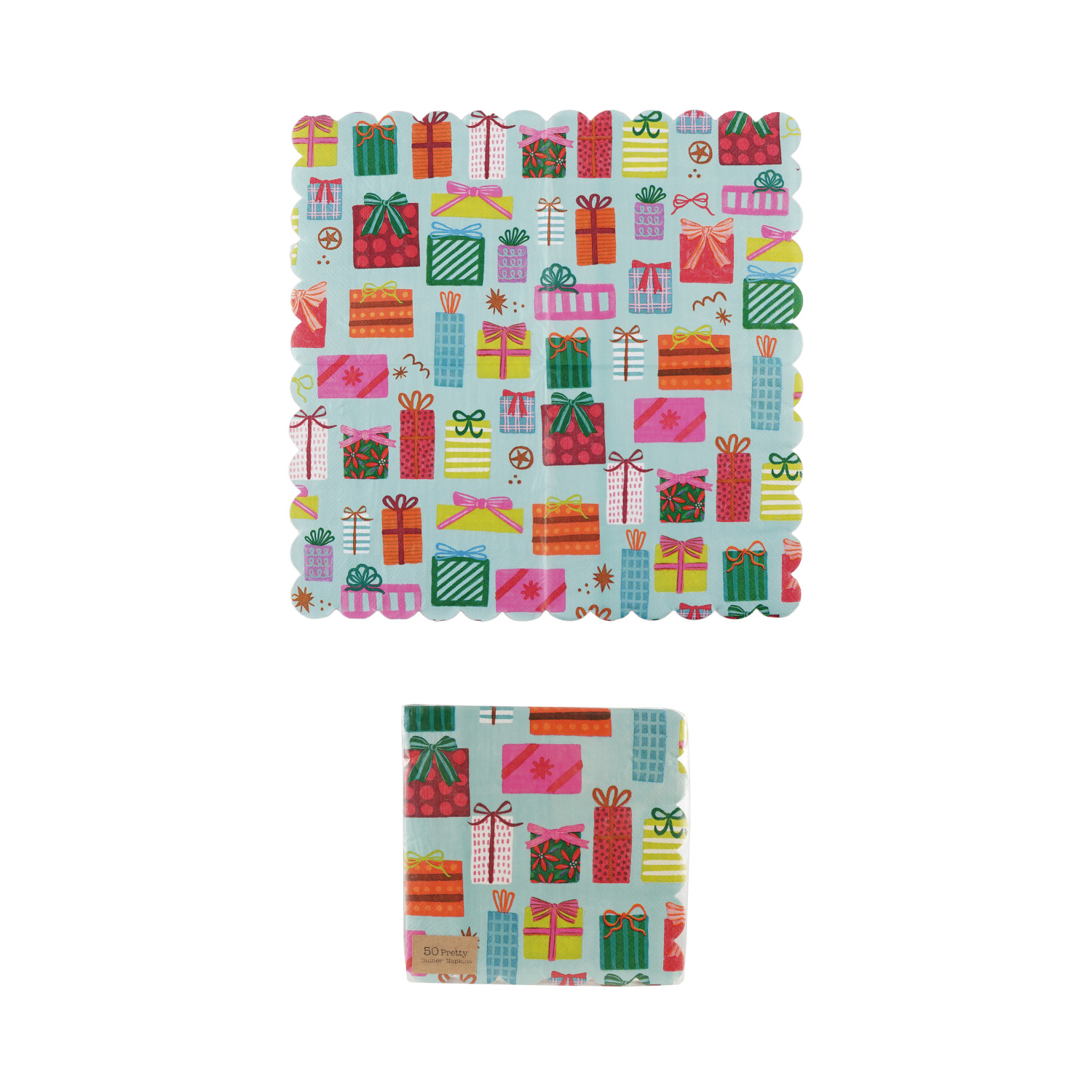 Paper Scalloped Dinner Napkins with Gift Box Pattern (Contains 50 Folded Pieces) ©