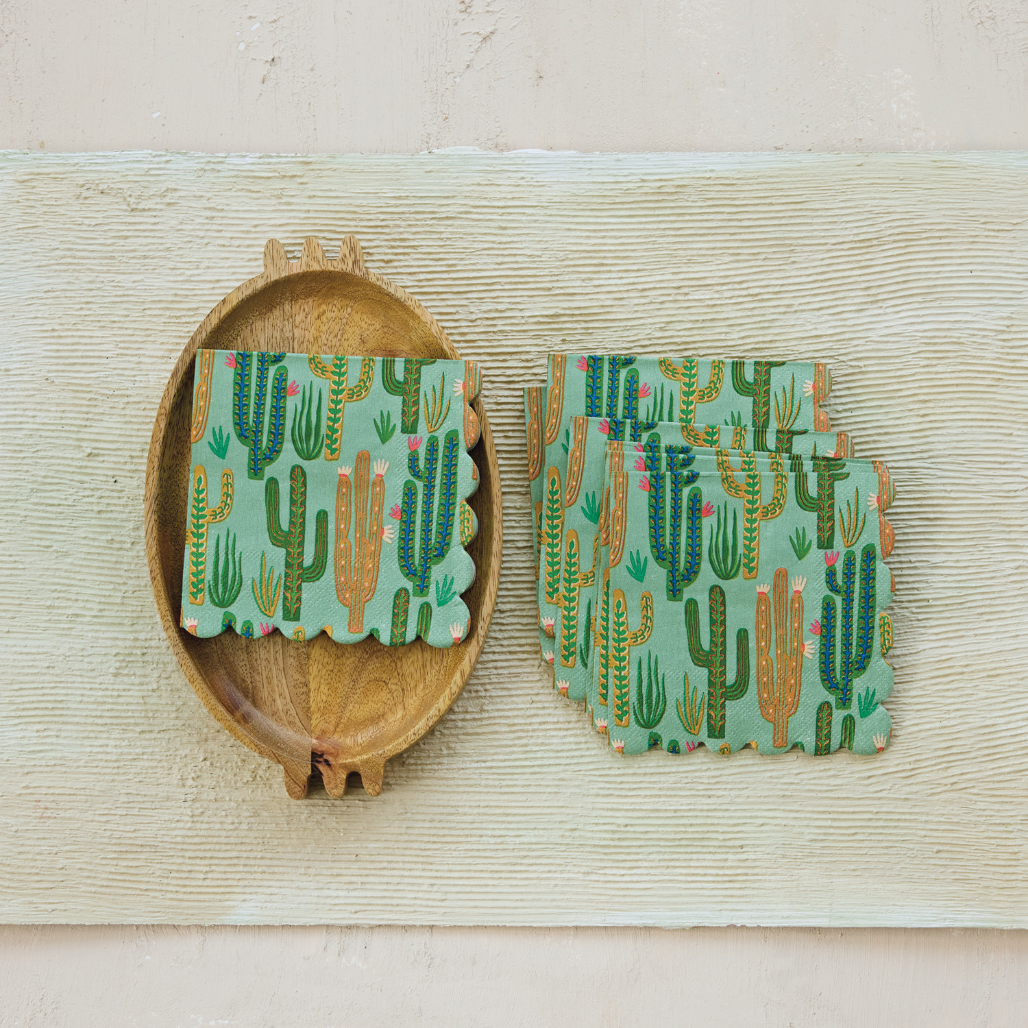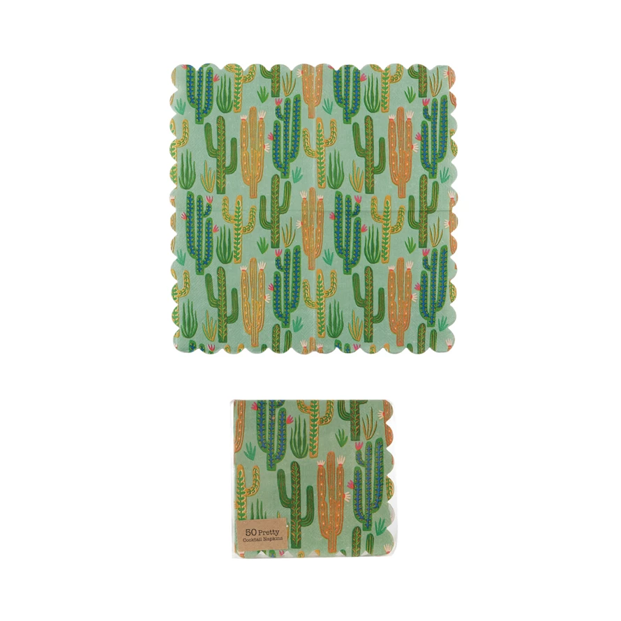Paper Scalloped Napkins with Cacti Pattern (Contains 50 Folded Pieces) ©