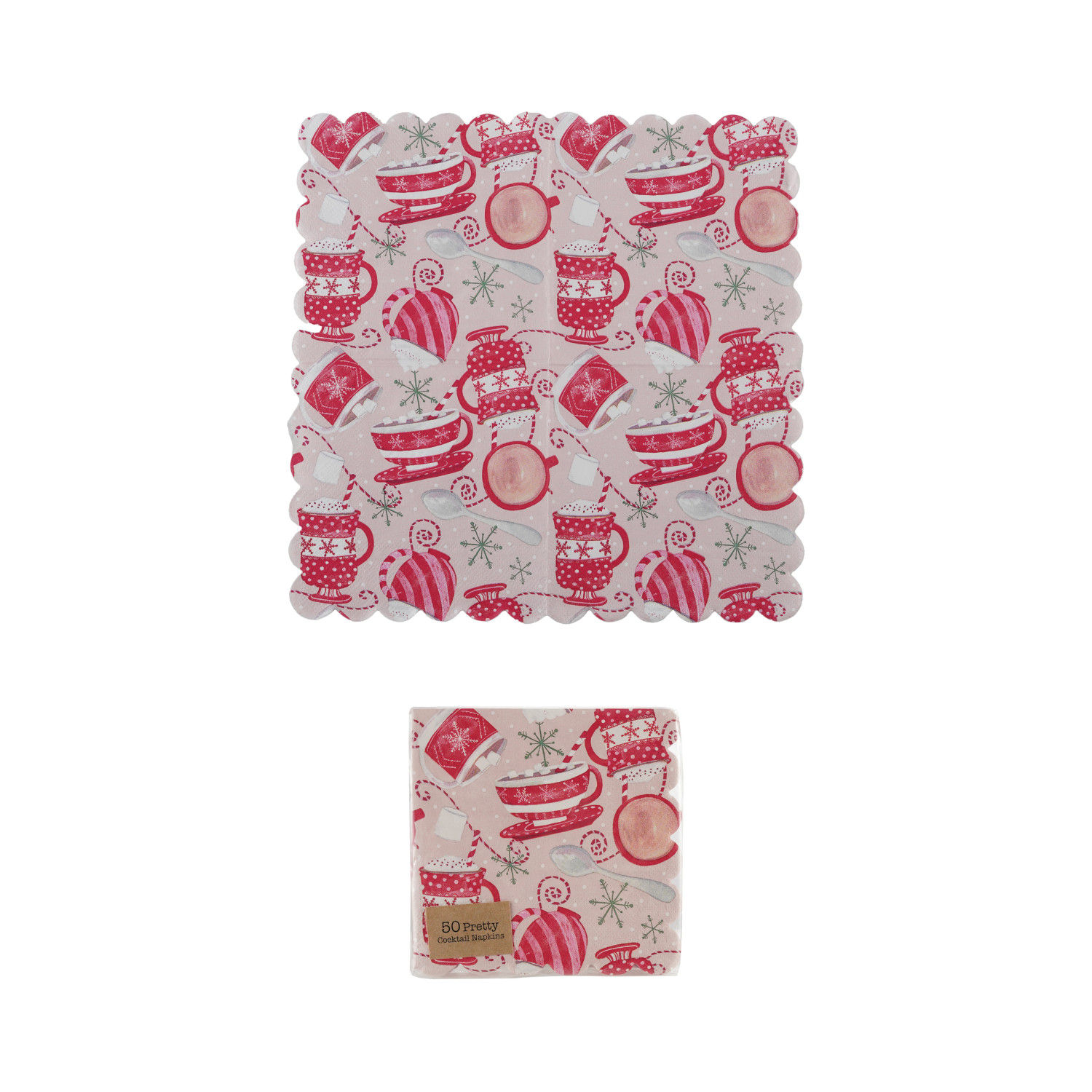 Paper Scalloped Napkins with Hot Chocolate Pattern (Contains 50 Folded Pieces) ©