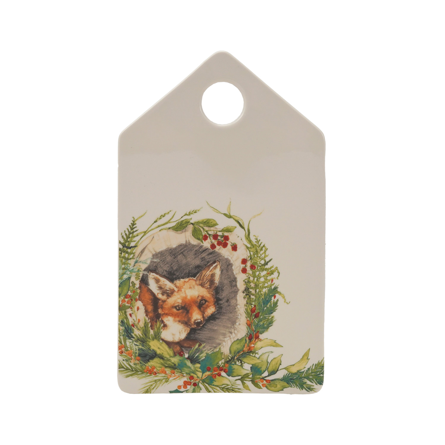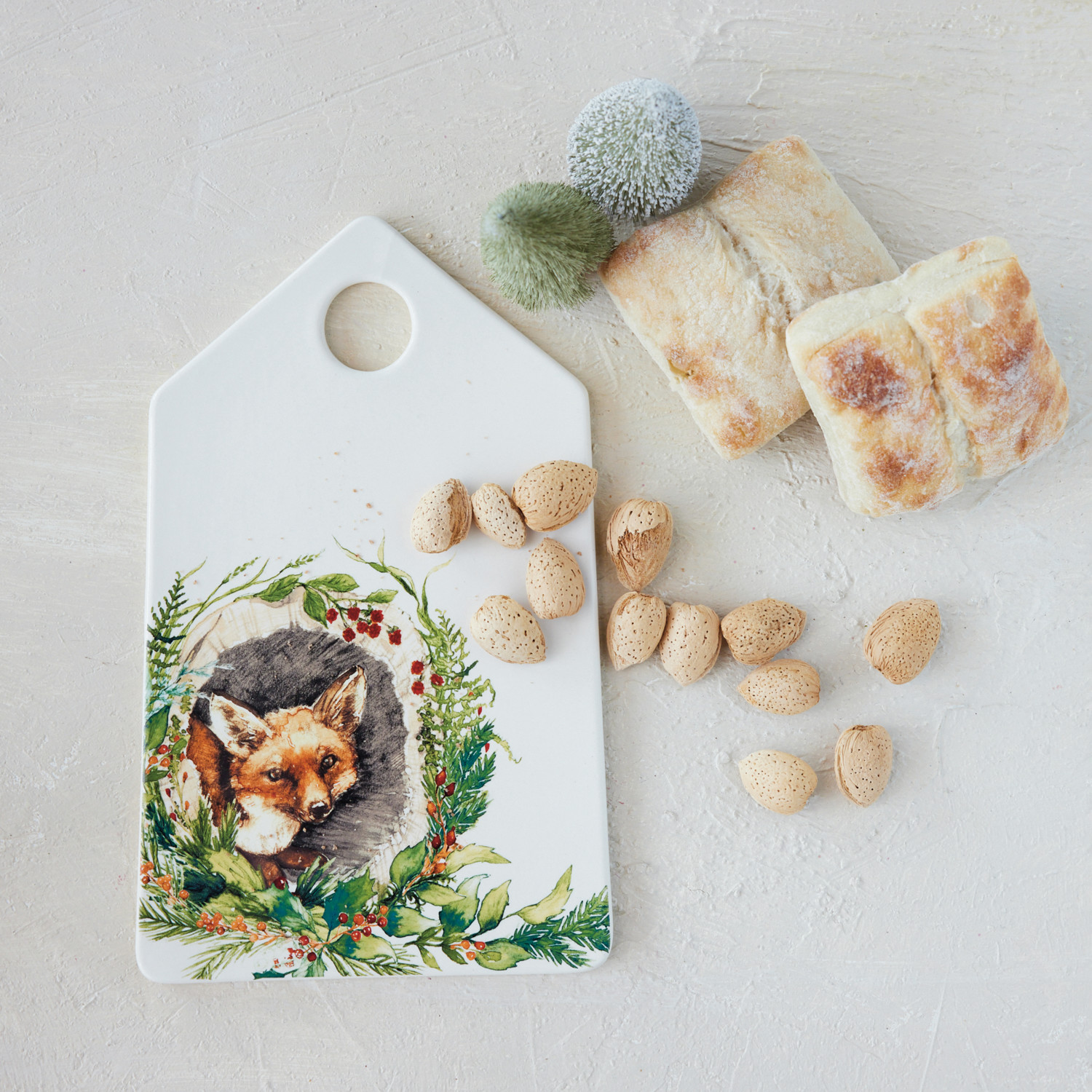 Stoneware Cheese/Serving Board with Fox, Seasonal Botanicals & Handle ©