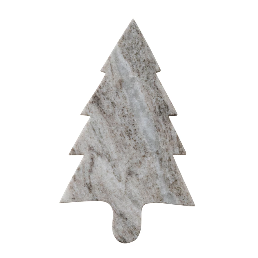 Catalog Name: 12"L x 7-1/4"W Marble Tree Shaped Cheese/Serving Board, Brown Melange (Each One Will Vary)