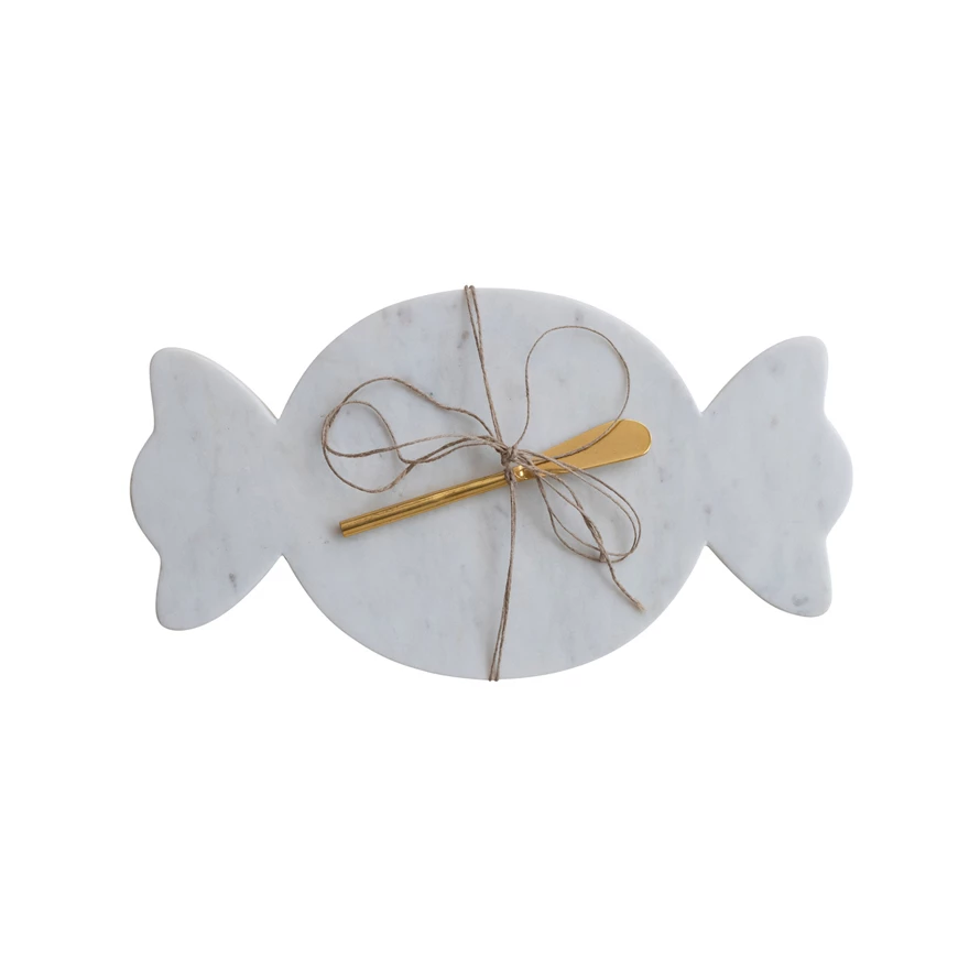 Marble Candy Shaped Cheese/Serving Board with Canape Knife, Set of 2 Tied with Jute