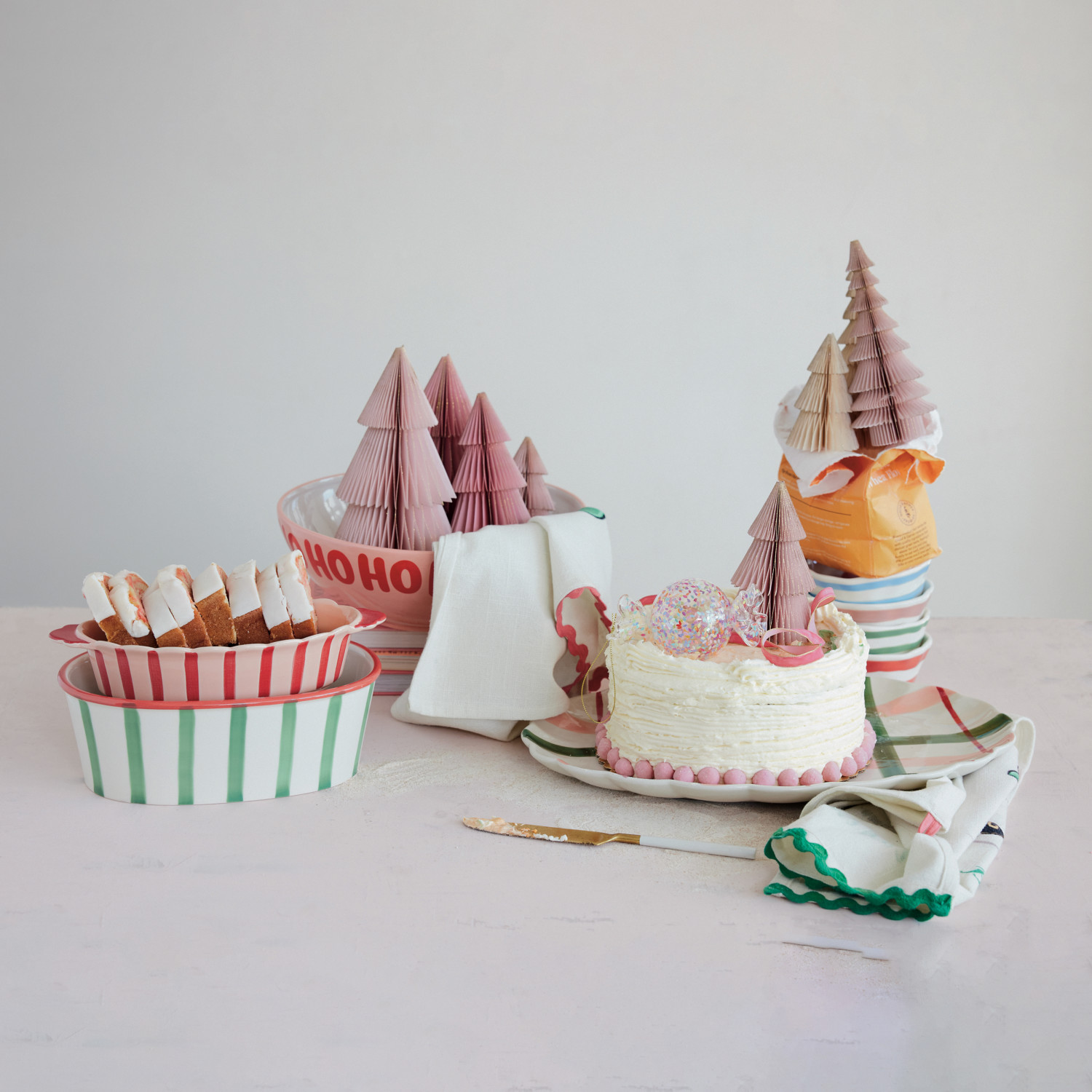 Catalog Name: 10-1/2"L x 5-1/2"W x 2-1/4"H 2-1/4 Cup Stoneware Scalloped Baker w/ Stripes & Handles, Pink & Red