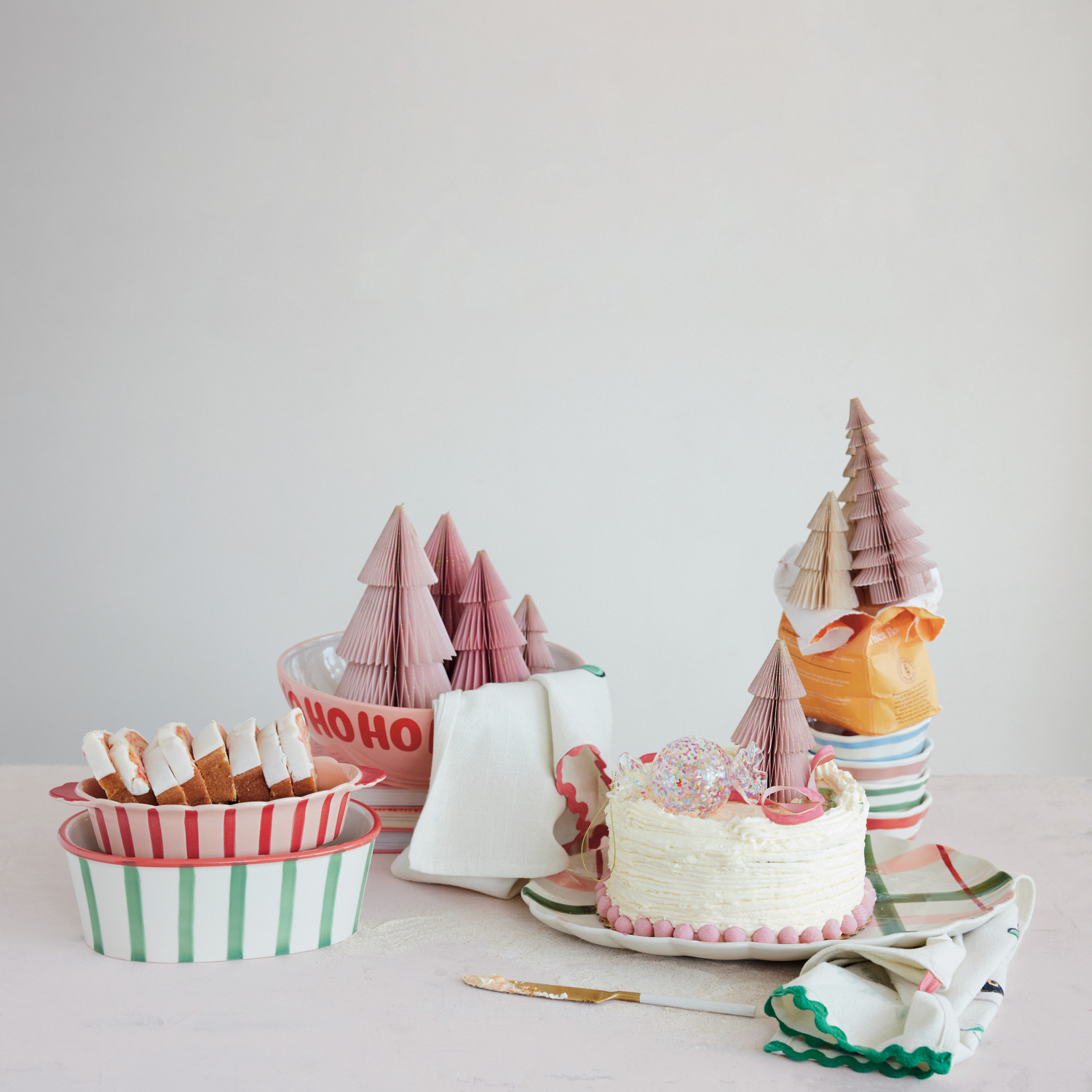 2 Quart Oval Stoneware Striped Baker "Merry Christmas"