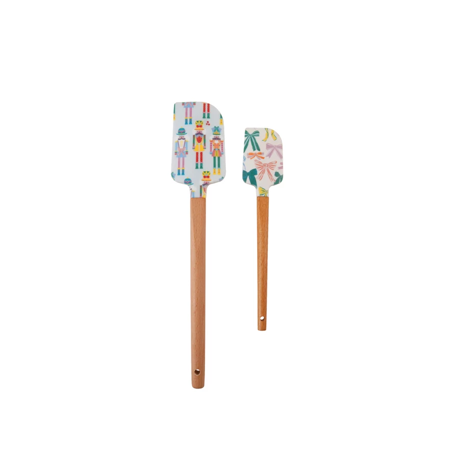 Silicone & Wood Two-Sided Spatulas with Holiday Patterns, Set of 2 ©