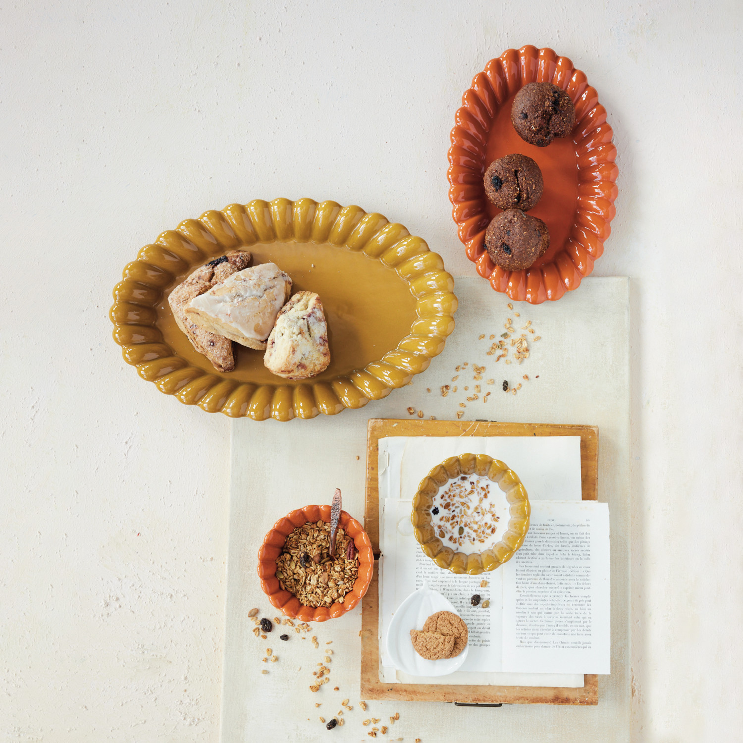 Catalog Name: 11-1/2"L x 7-1/2"W Oval Stoneware Scalloped Platter, Orange Color