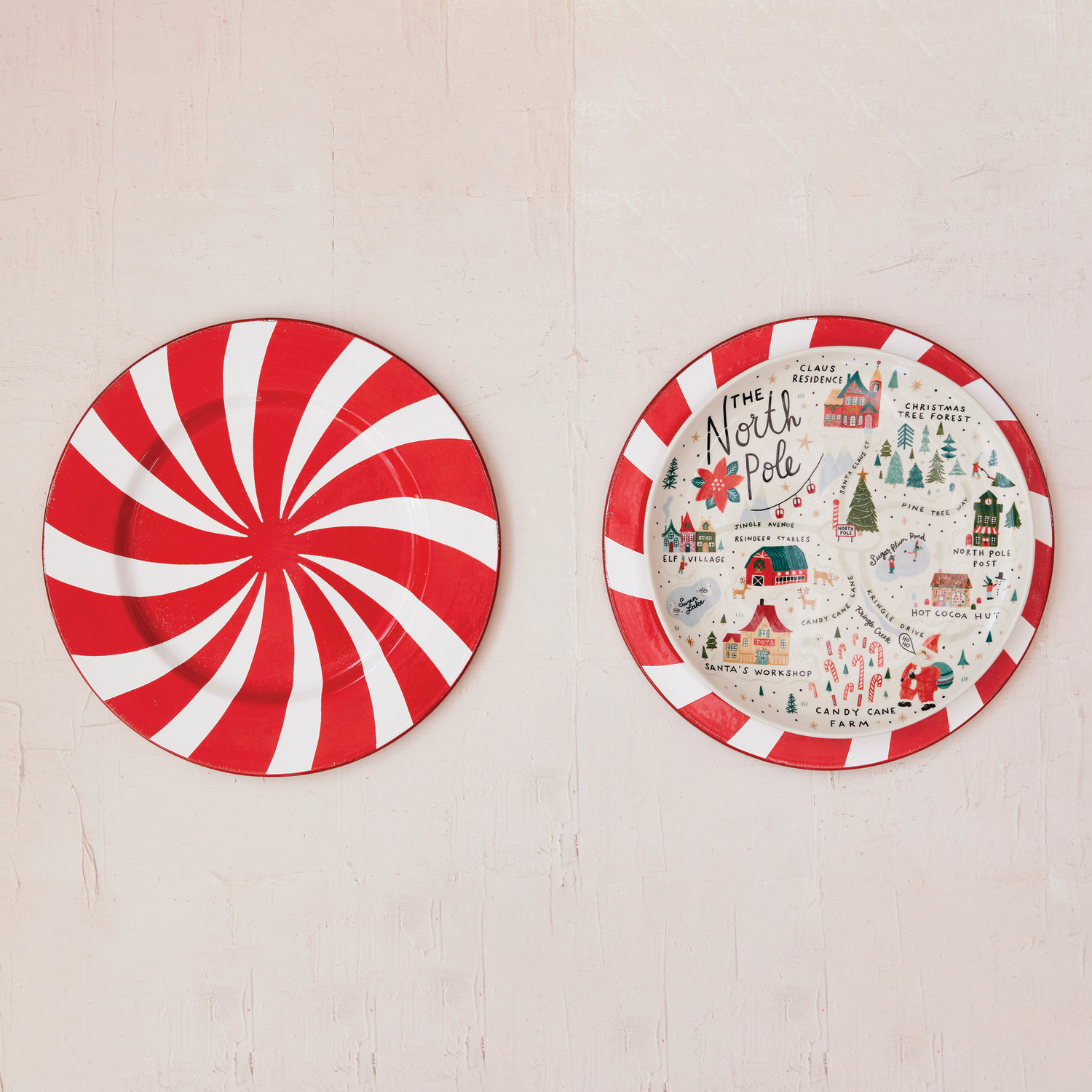 11" Round Stoneware Plate with North Pole Scene, Multi Color ©