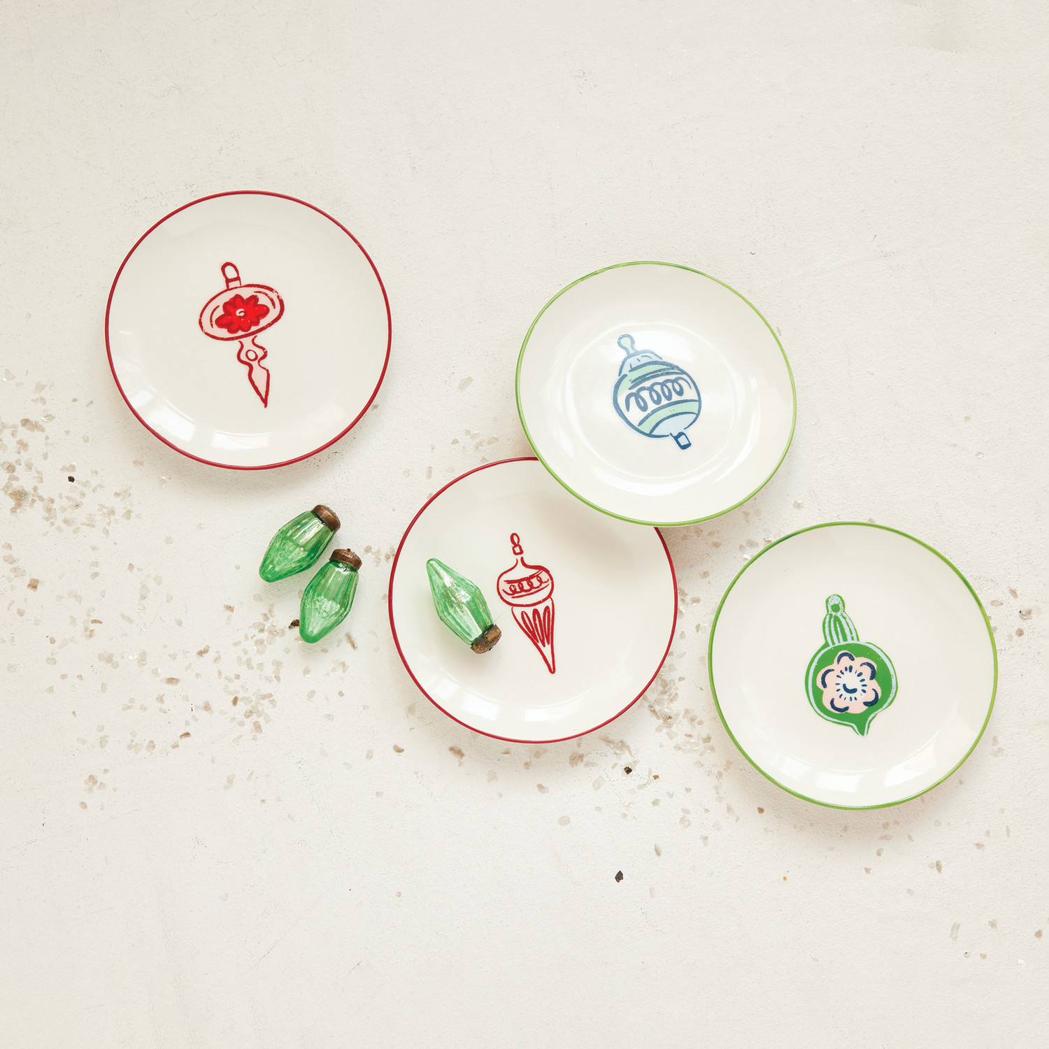 Catalog Name: 5" Round Stoneware Plate w/ Wax Relief Ornament & Colored Rim, Multi Color, 4 Styles ©