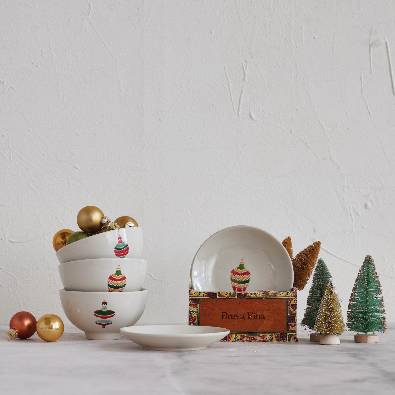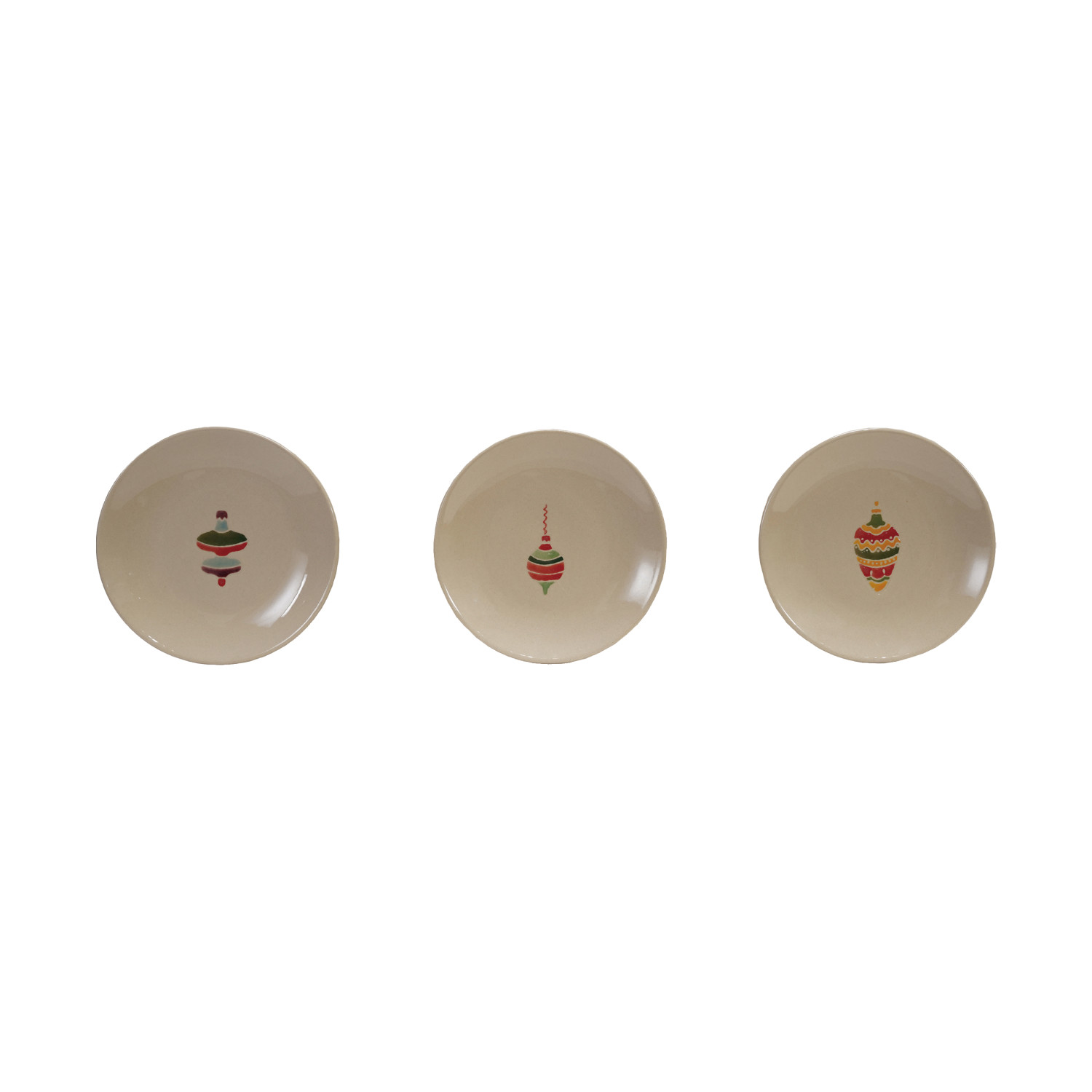 Catalog Name: 5" Round Hand-Painted Stoneware Plate w/ Wax Relief Ornament Image, Multi Color, 3 Styles