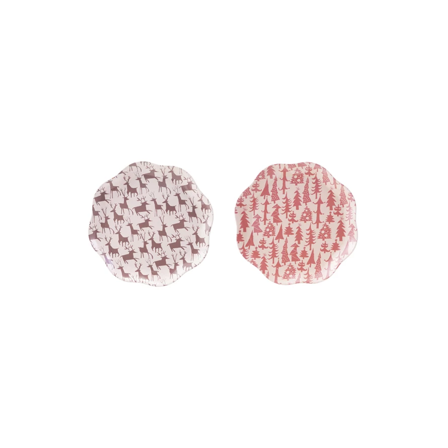 Bamboo Fiber Scalloped Tray with Holiday Pattern, 2 Styles ©