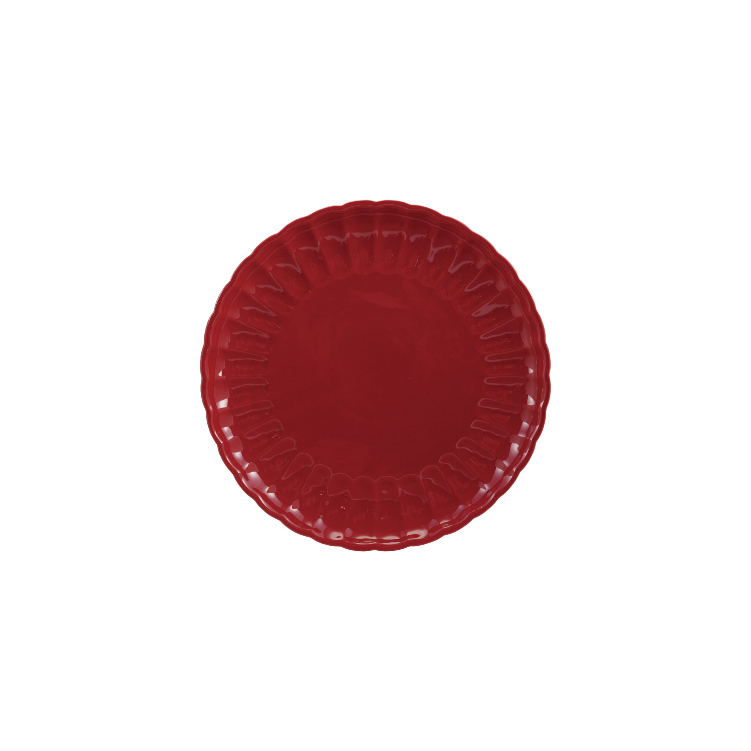 Catalog Name: 8" Round Stoneware Fluted Plate, Reactive Glaze, Red (Each One Will Vary)