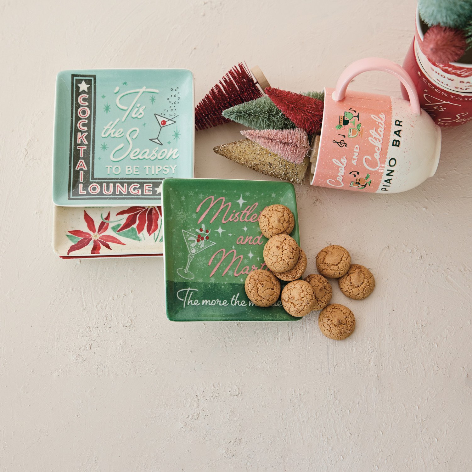 Catalog Name: 5" Square Stoneware Plate w/ Holiday Bar Saying & Image, Multi Color, 4 Styles ©