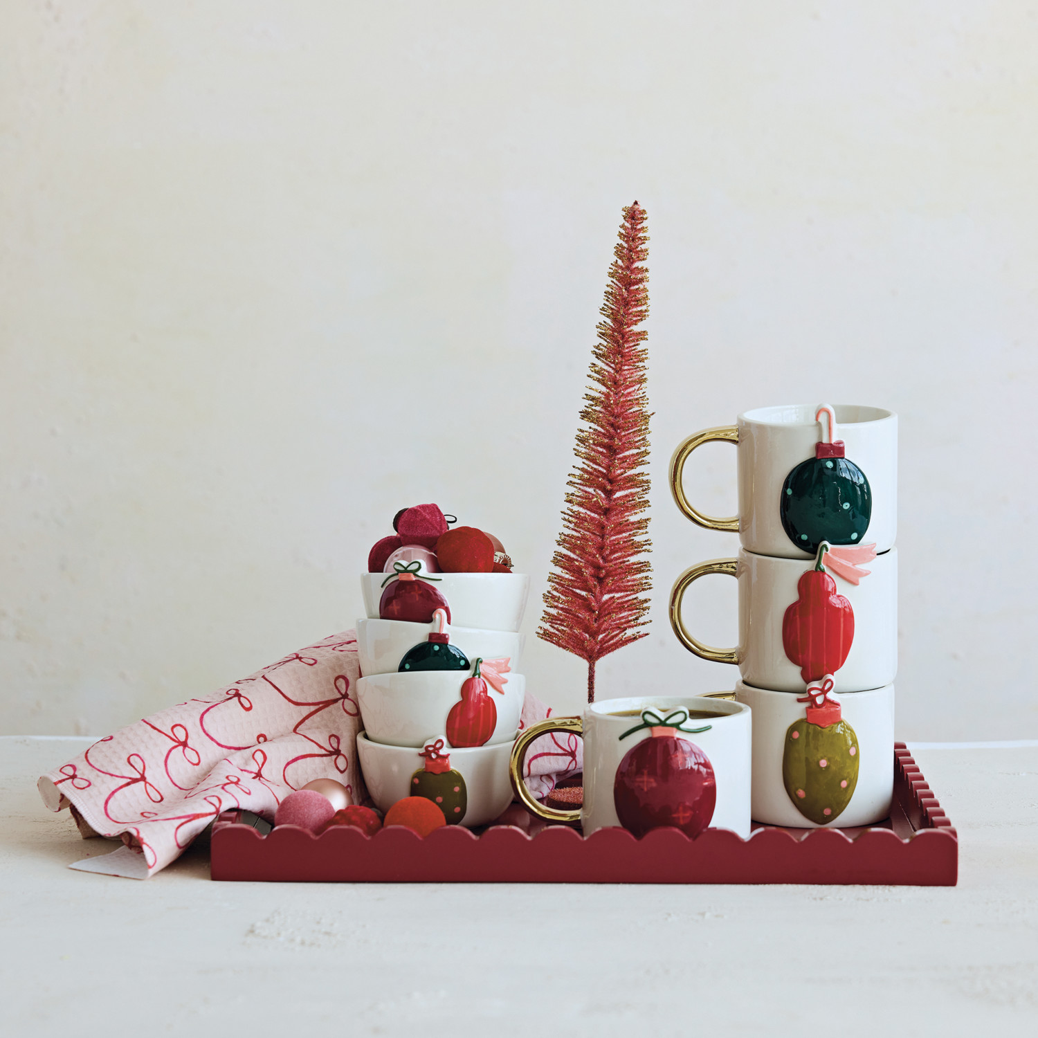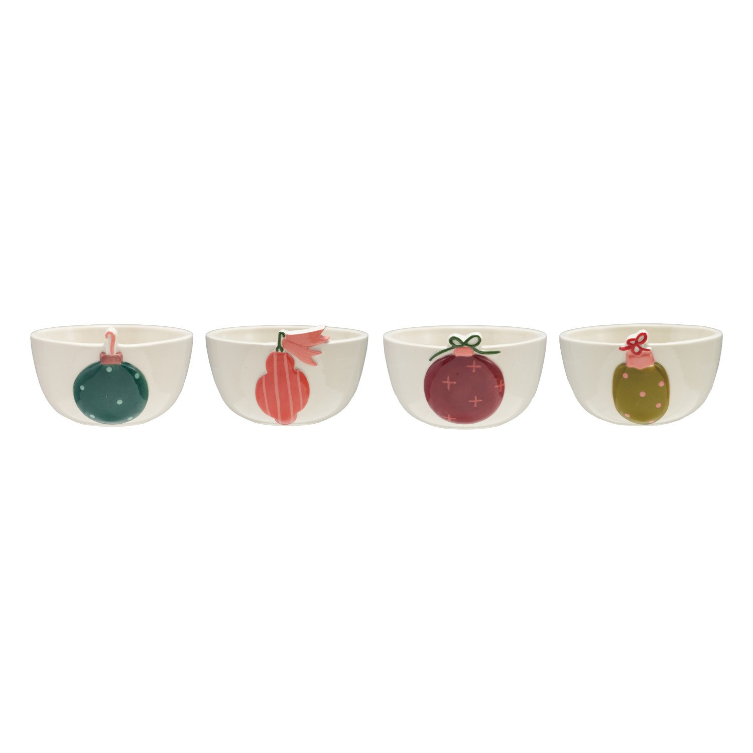 Catalog Name: 4" Round Hand-Painted Stoneware Bowl w/ 3D Ornament, Multi Color, 4 Styles ©