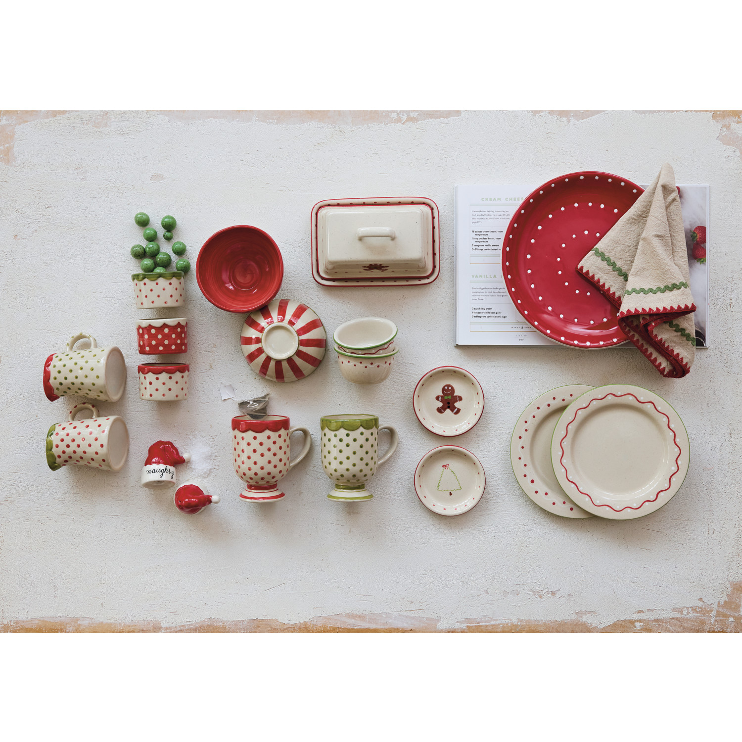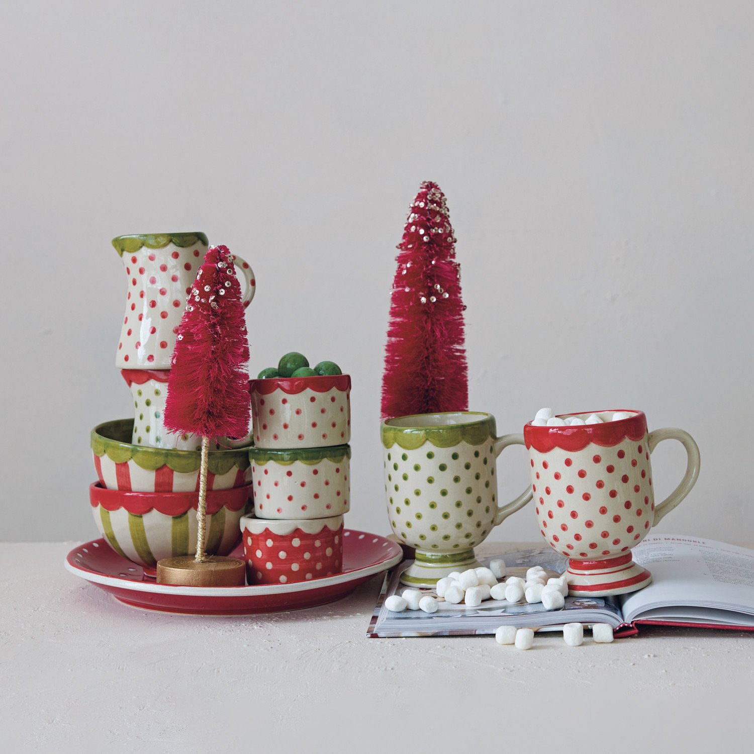 Catalog Name: 5" Round x 2-3/4"H Hand-Painted Stoneware Striped Bowl w/ Scalloped Rim, 2 Colors