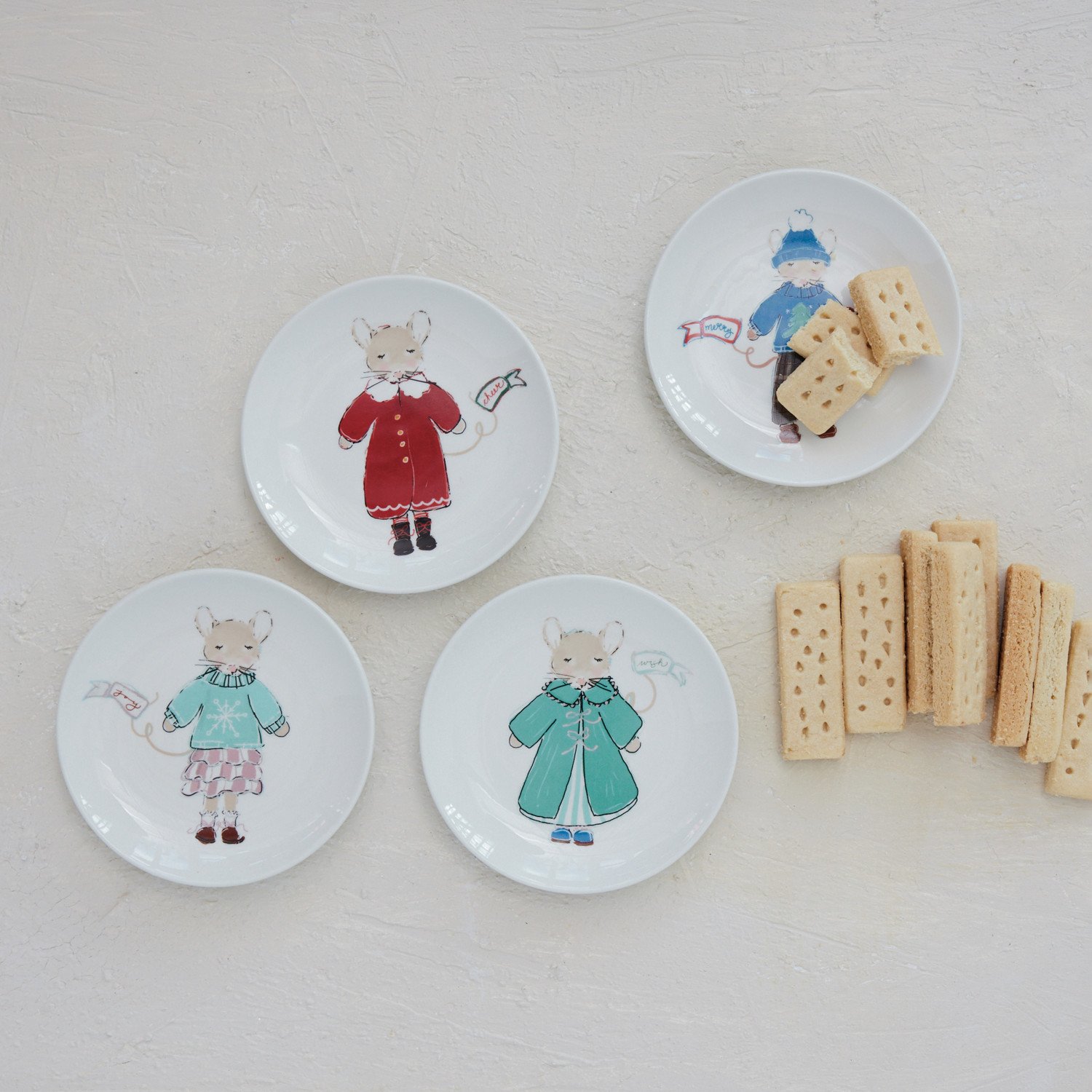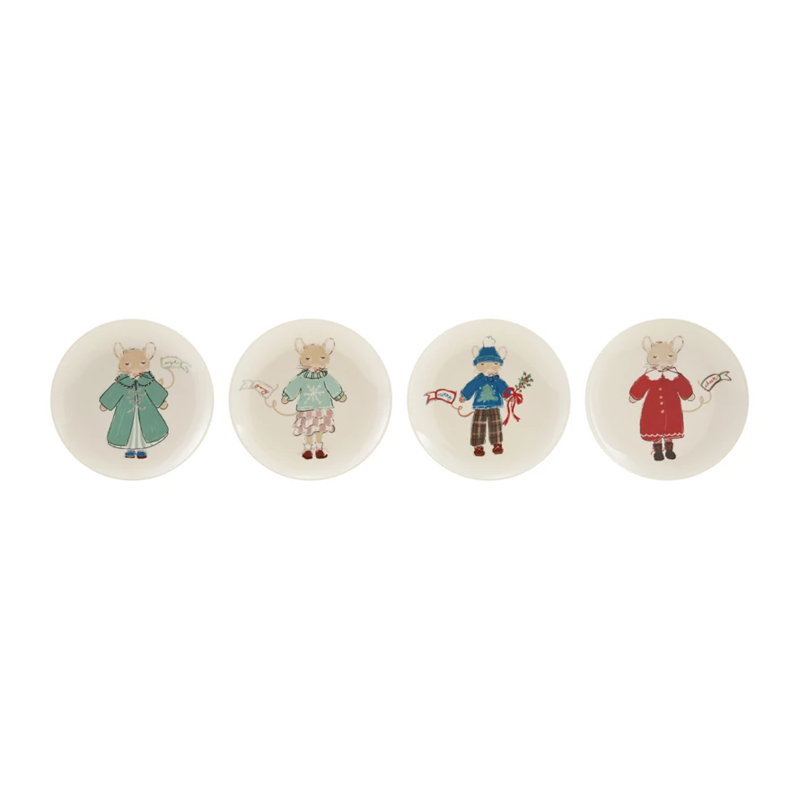 Stoneware Plate with Mouse in Clothes & Holiday Word Tag on Tail, 4 Styles ©