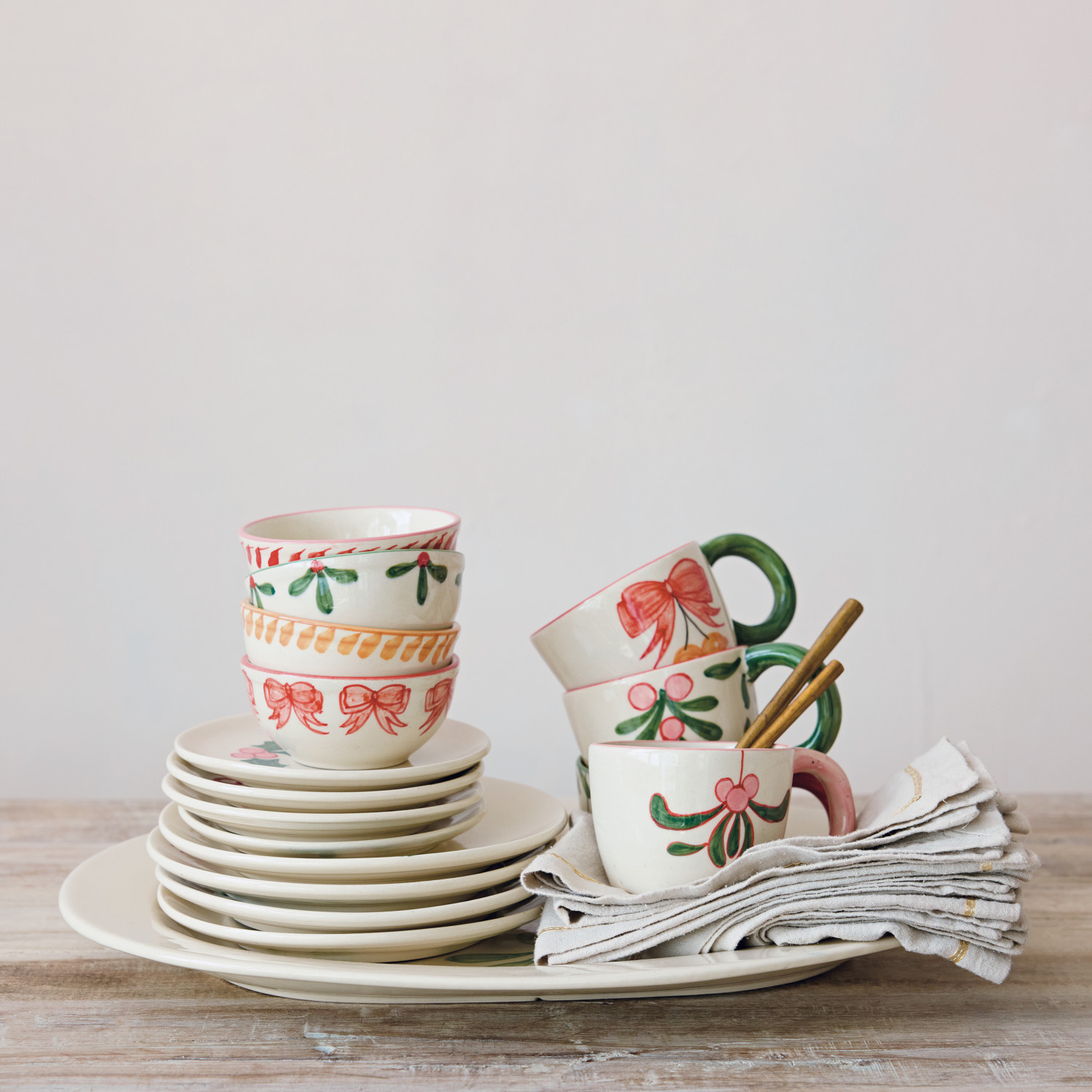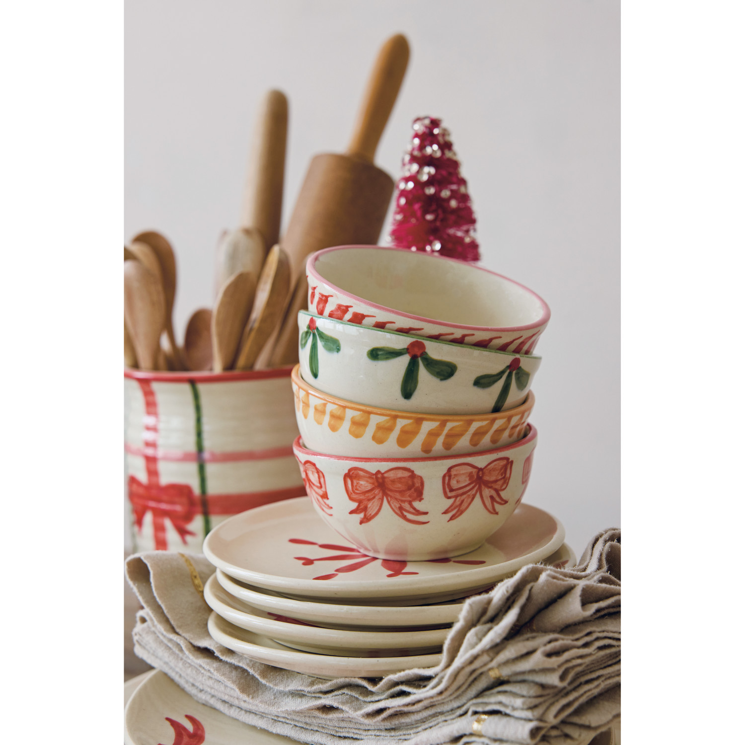 Hand-Painted Stoneware Bowl with Holiday Image Inside, 4 Styles (Each One Will Vary)