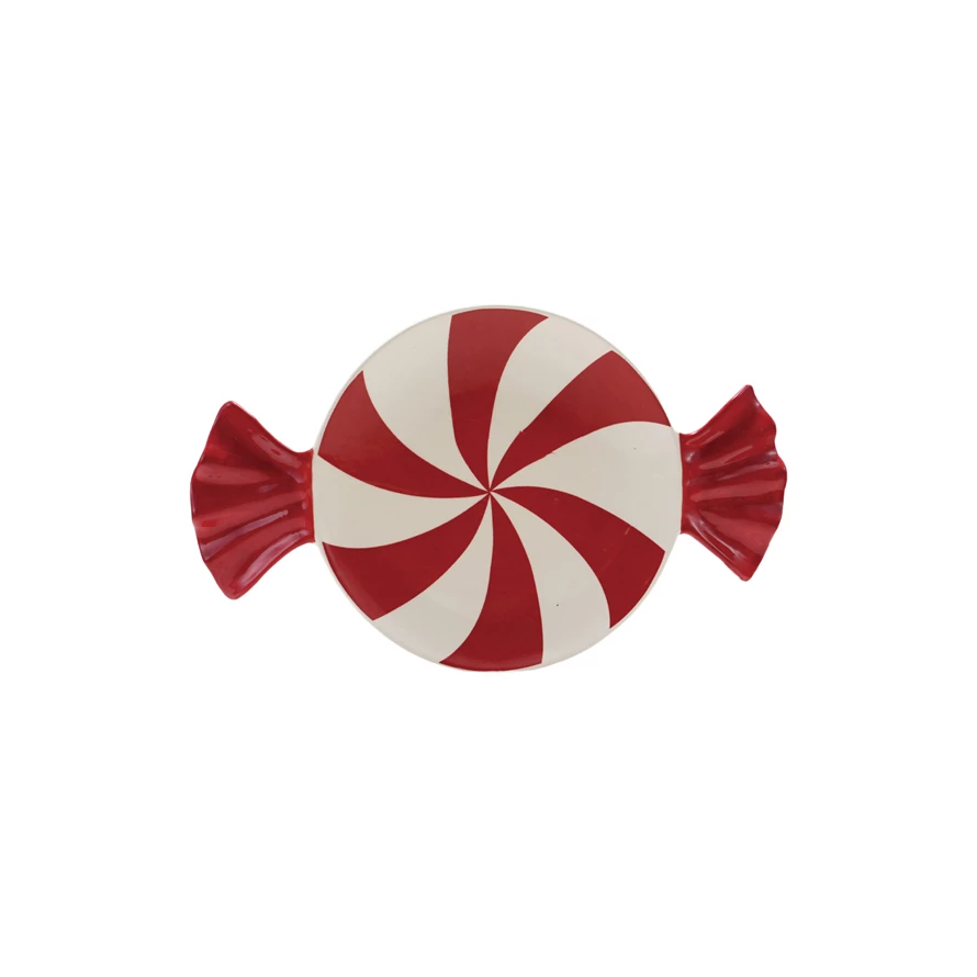 Hand-Painted Ceramic Candy Shaped Plate, Red & White