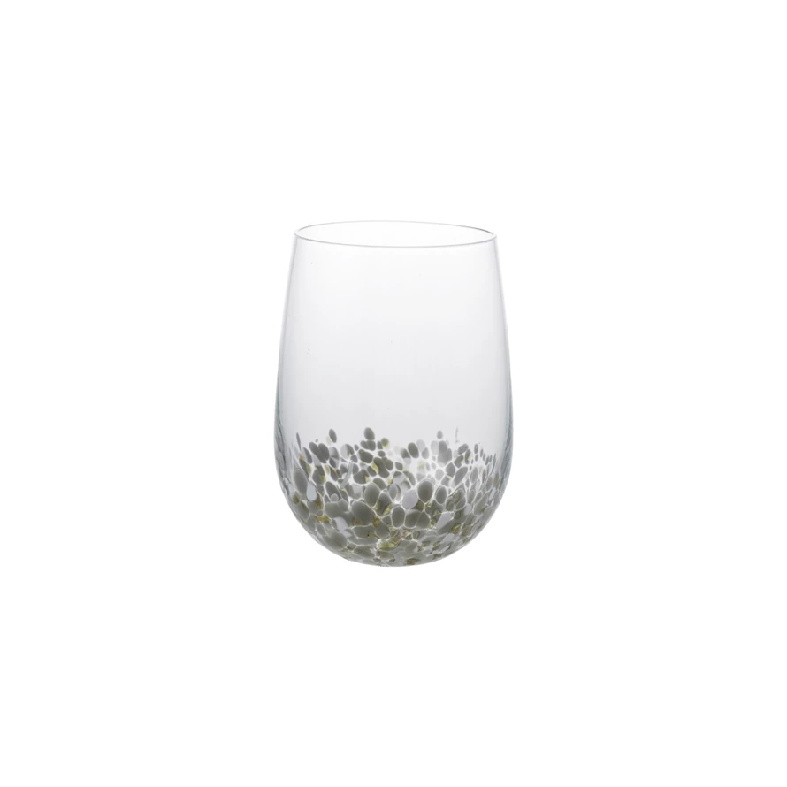 Catalog Name: 3-1/4" Round x 4-1/4"H 12 oz. Confetti Drinking Glass, Gold Finish & White