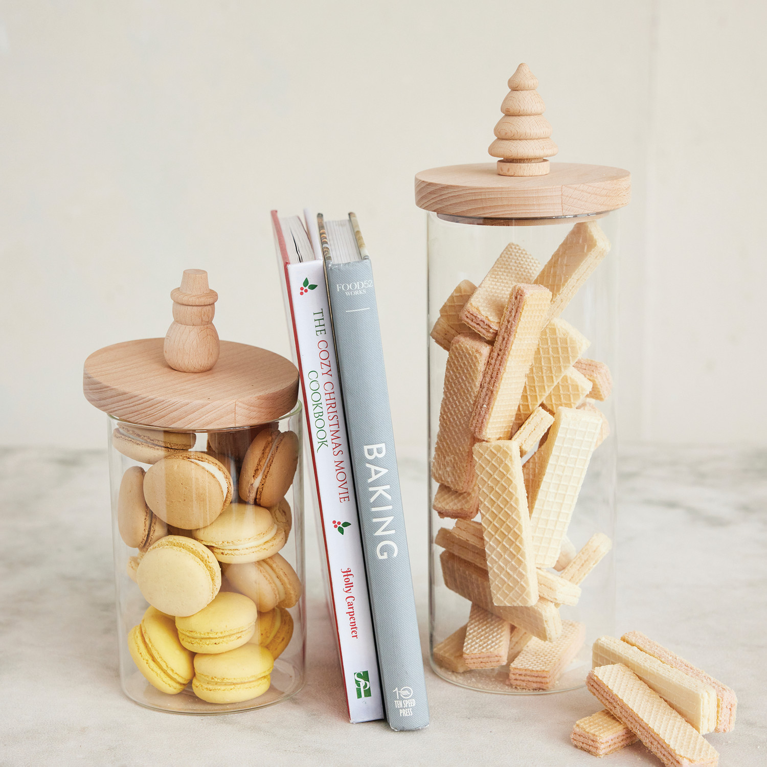 4" Round x 8"H Glass Canister with Wood Lid & Snowman Knob