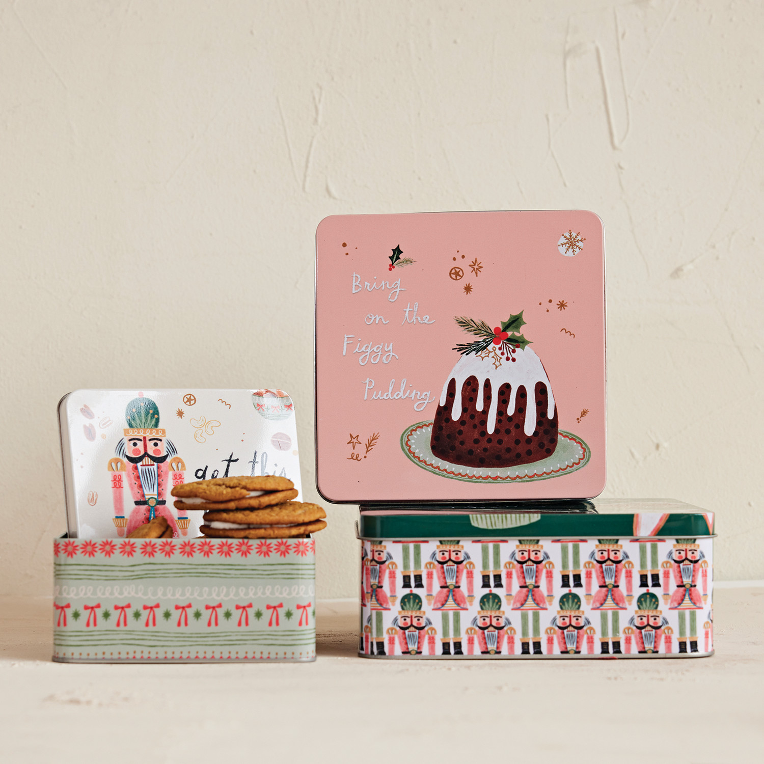Embossed Tin with Lid & Holiday Treats, Set of 3 ©
