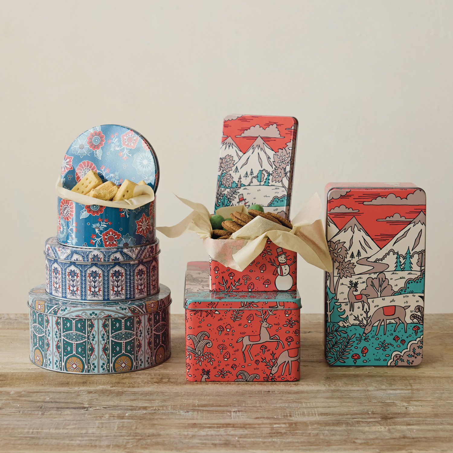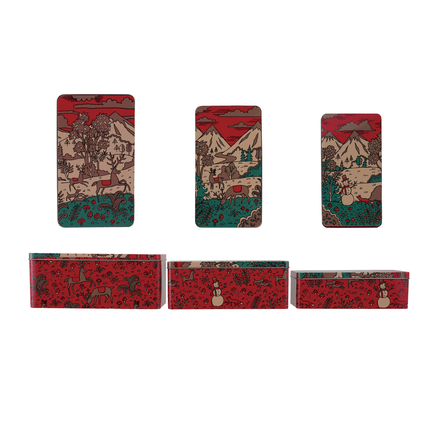 Tins with Lids, Winter Scene & Reindeer, Set of 3 ©