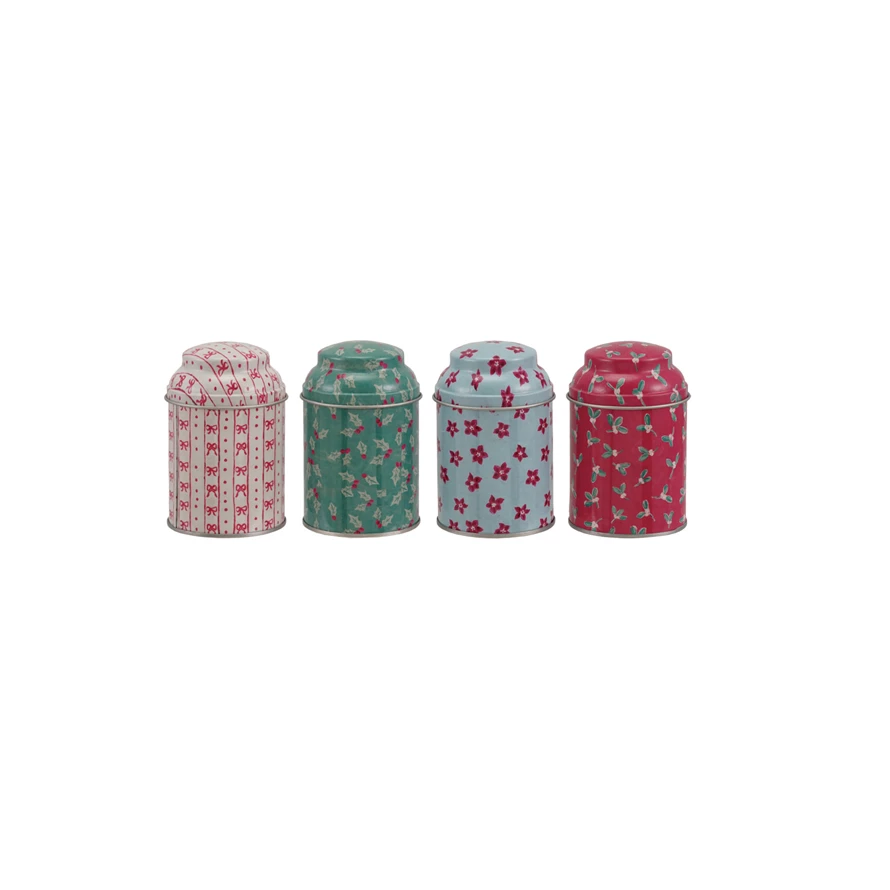 Catalog Name: 2-3/4" Round x 4"H Tin Container w/ Lid & Holiday Pattern, Multi Color, 4 Styles ©