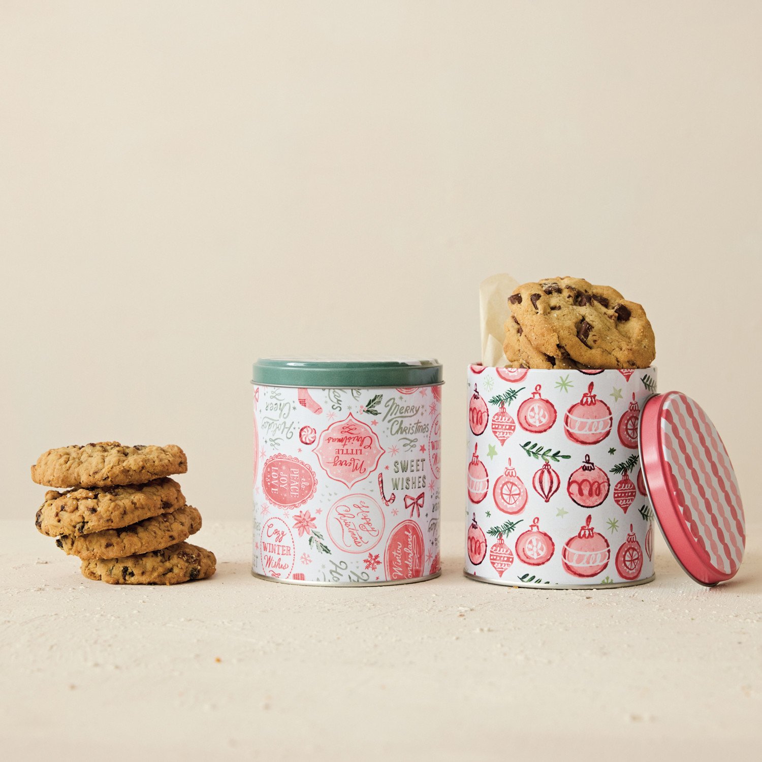Tin Container with Lid & Holiday Pattern, 2 Styles ©