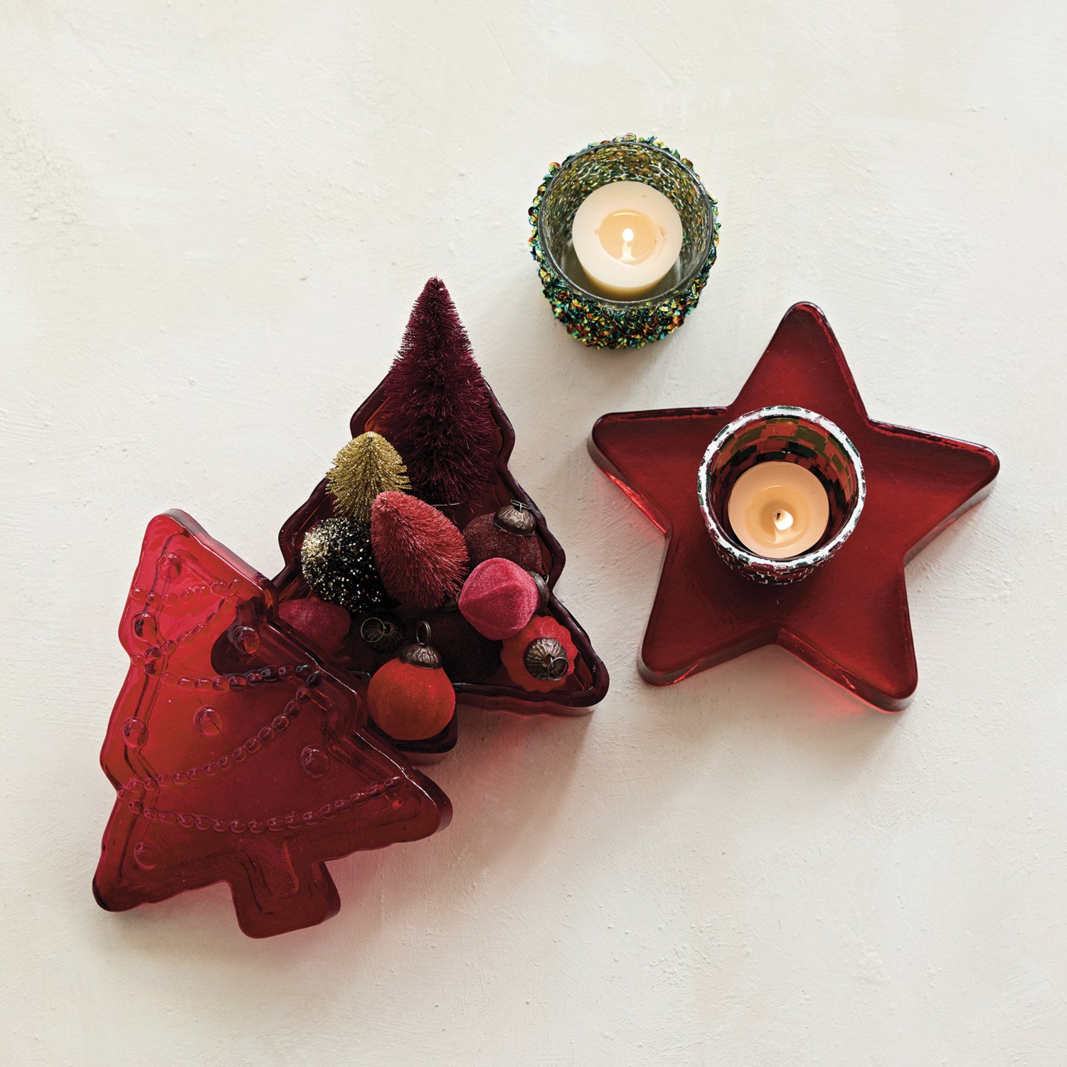 Catalog Name: 6-1/2"L x 6"W Pressed Tree Shaped Container w/ Lid, Red