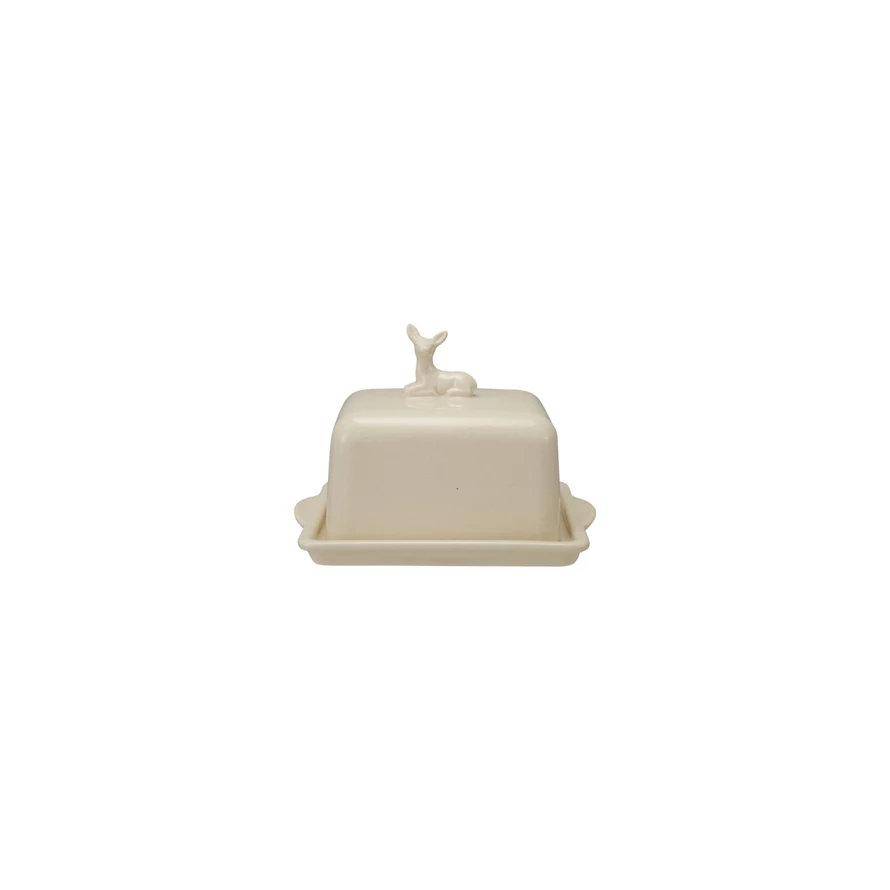 Catalog Name: 6-1/2"L x 4-3/4"W x 4-1/2"H Stoneware Butter Dish w/ Deer, White