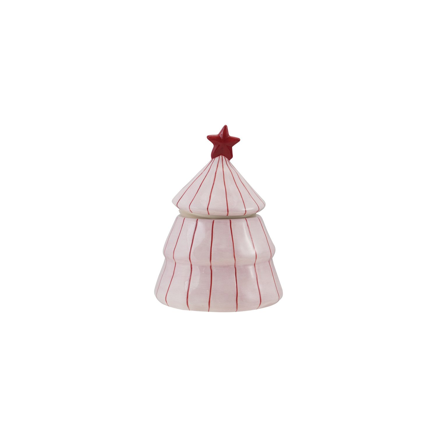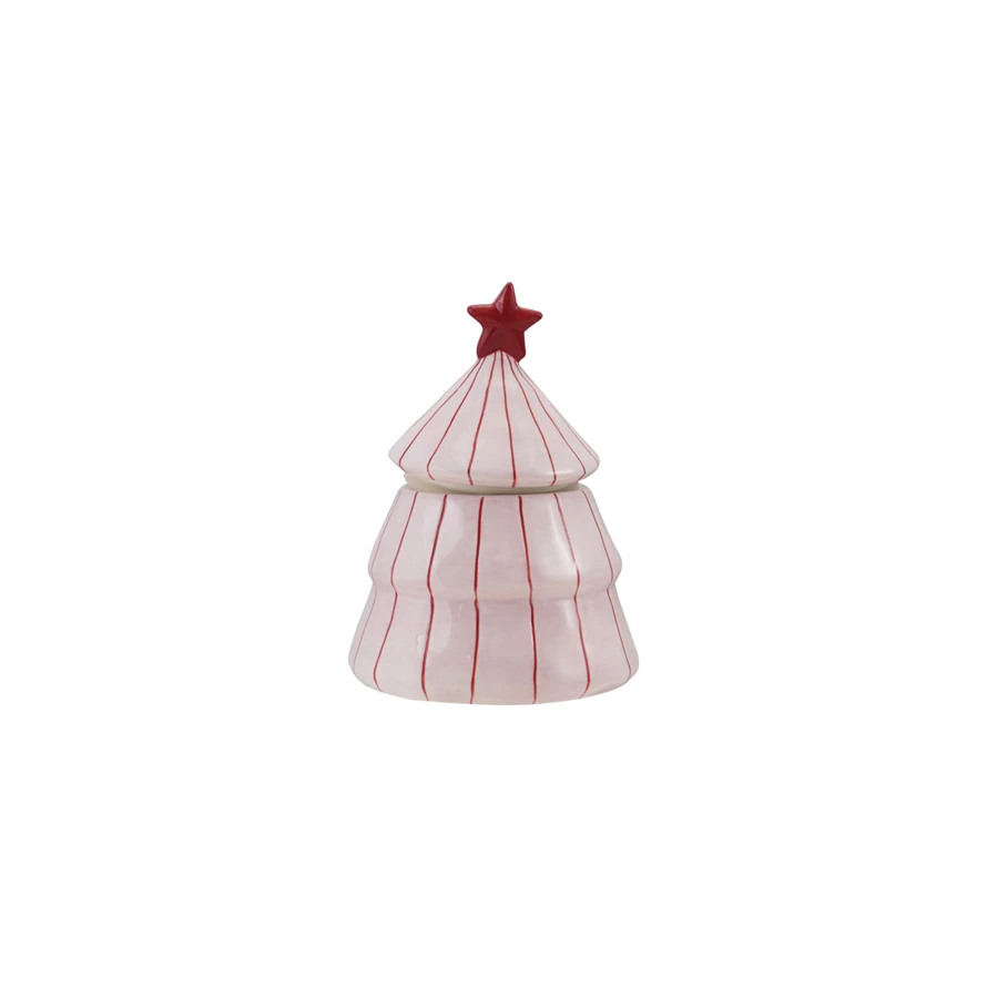 Hand-Painted Stoneware Striped Tree Shaped Canister with Star