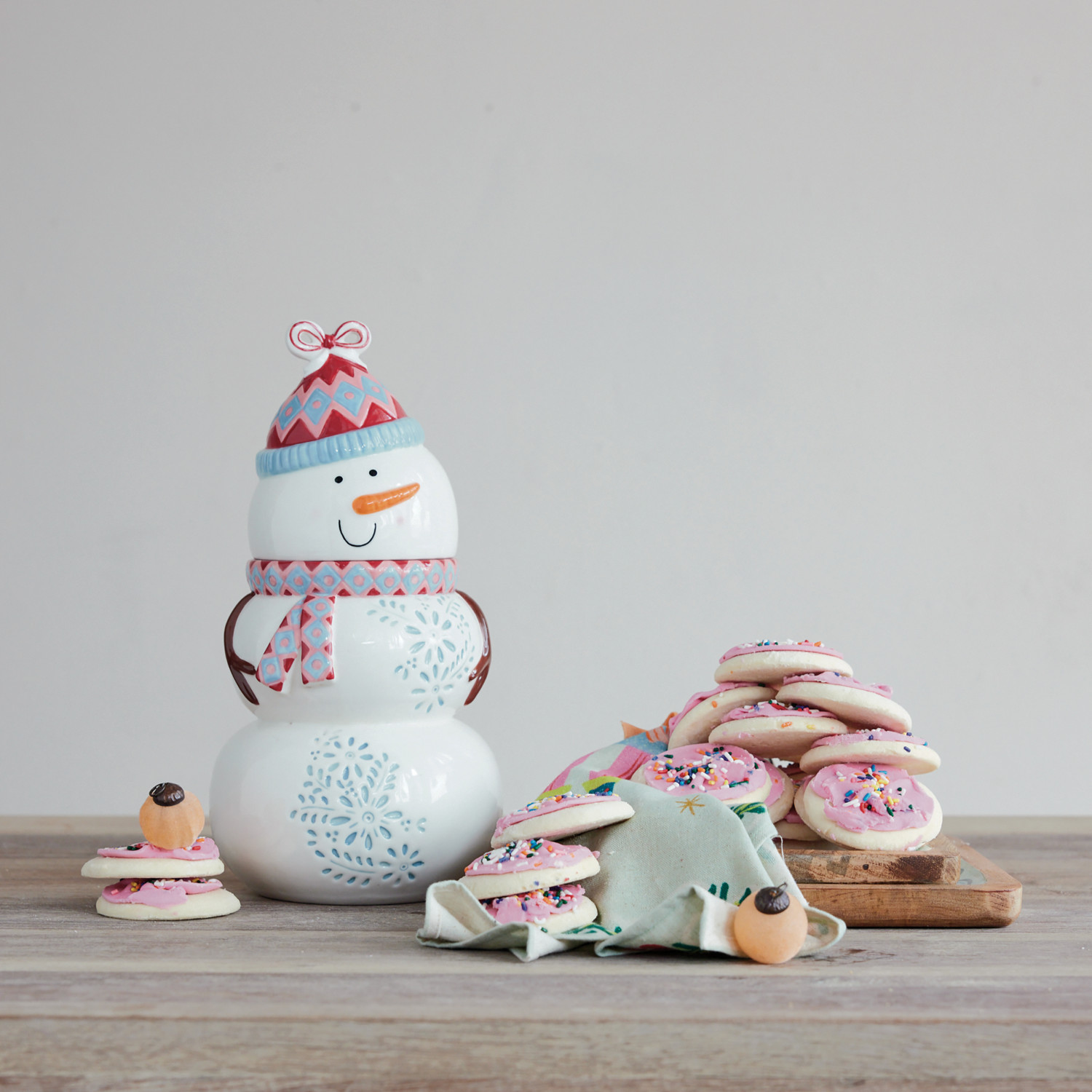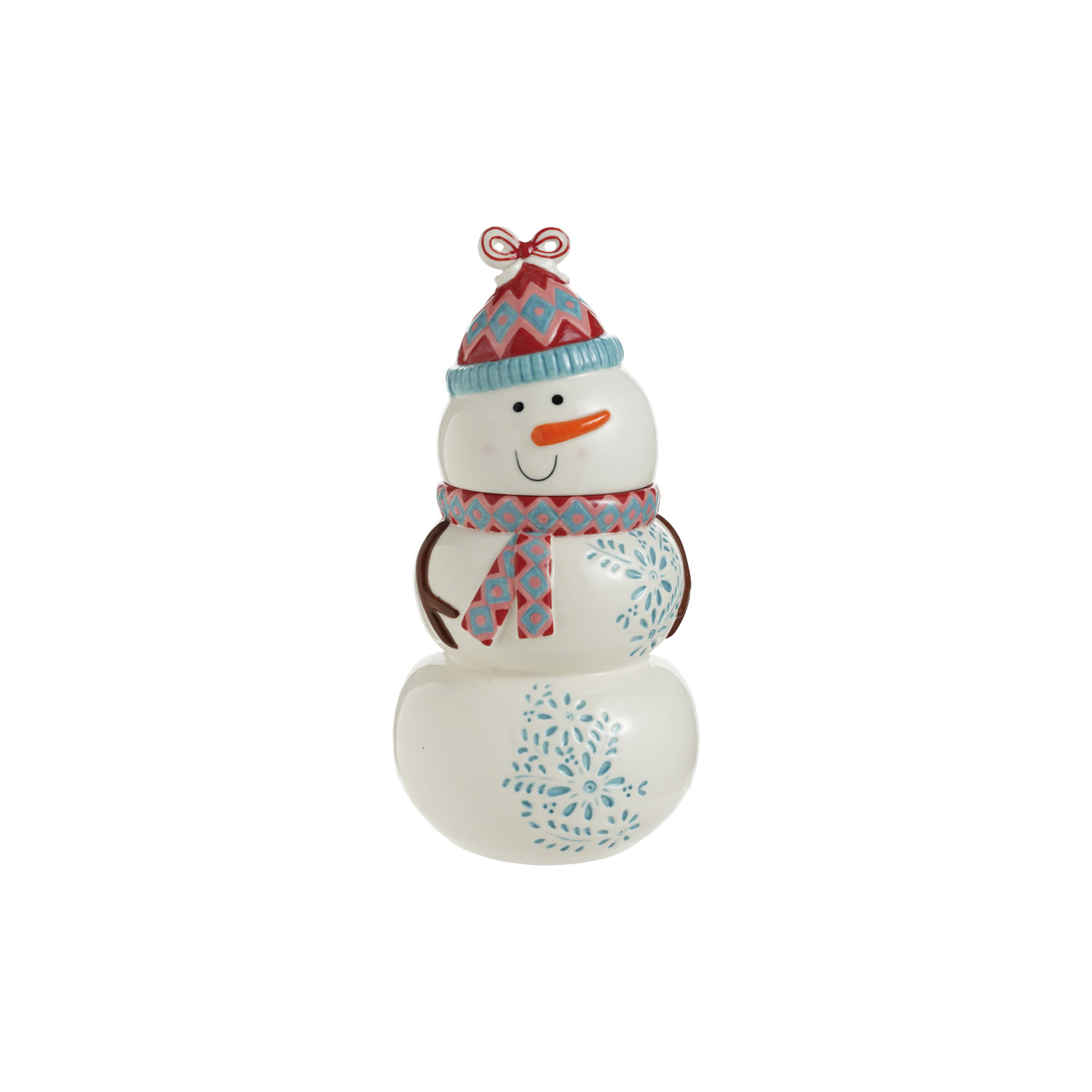 Catalog Name: 6-1/4" Round x 12-1/4"H Stoneware Snowman Shaped Cookie Jar, Multi Color ©