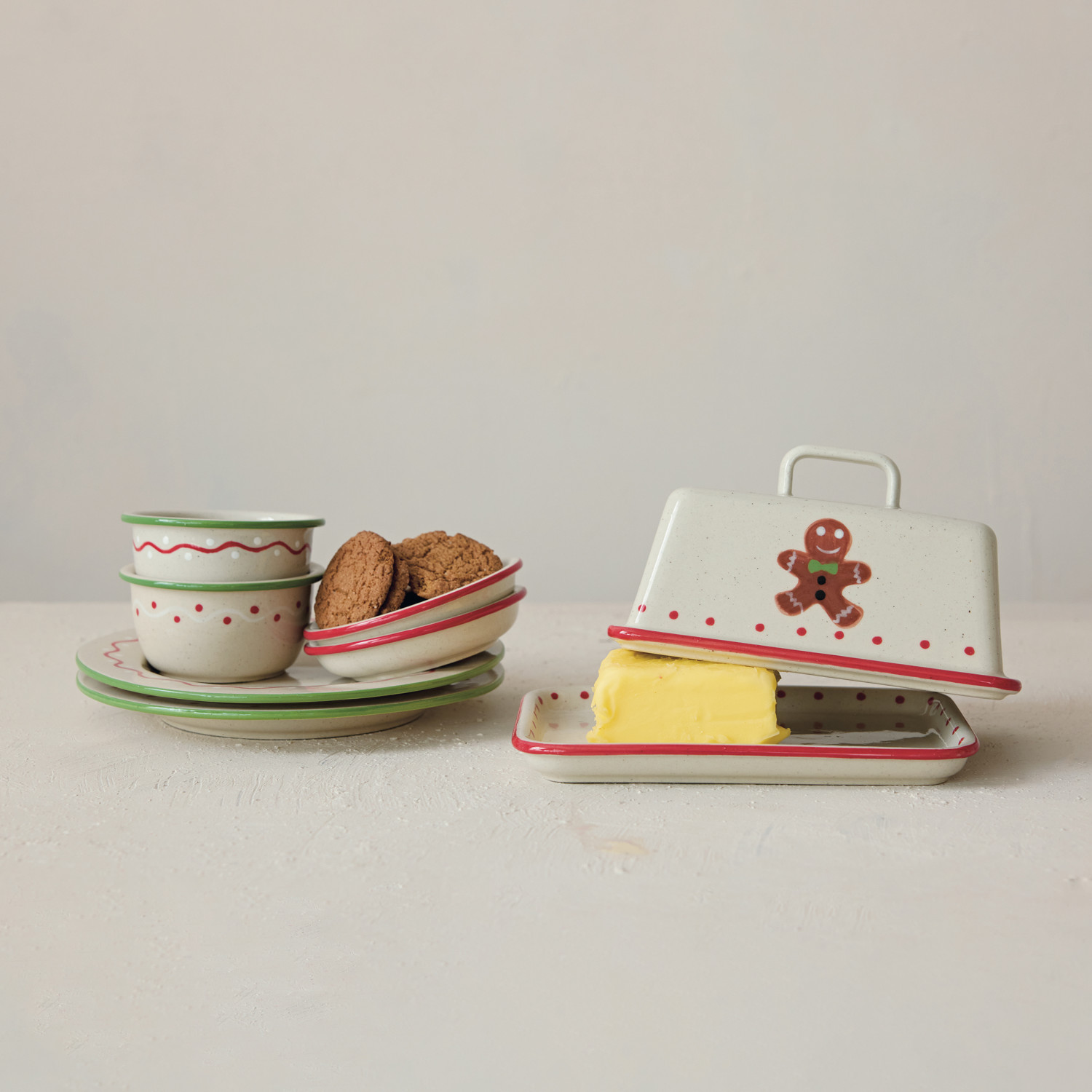 Hand-Painted Stoneware Butter Dish with Gingerbread Man