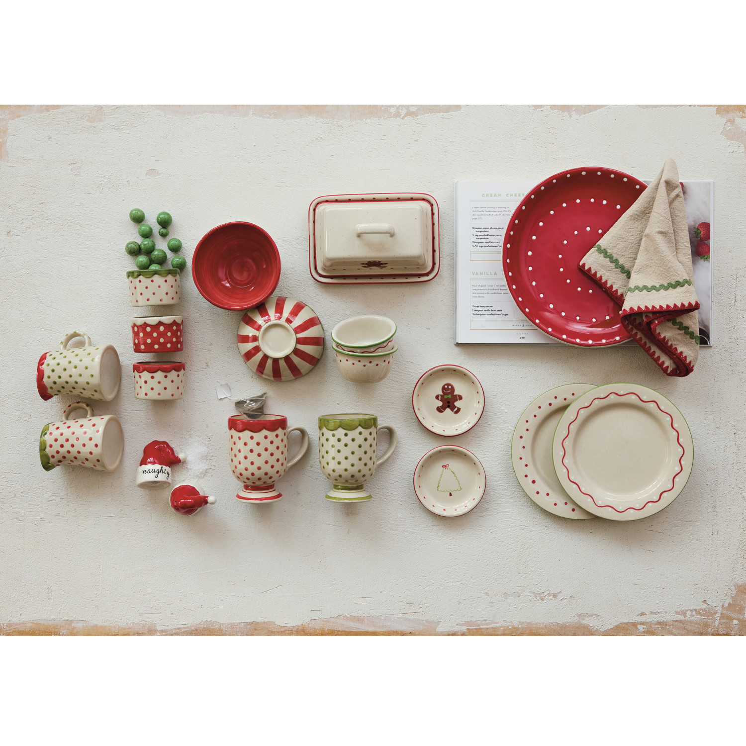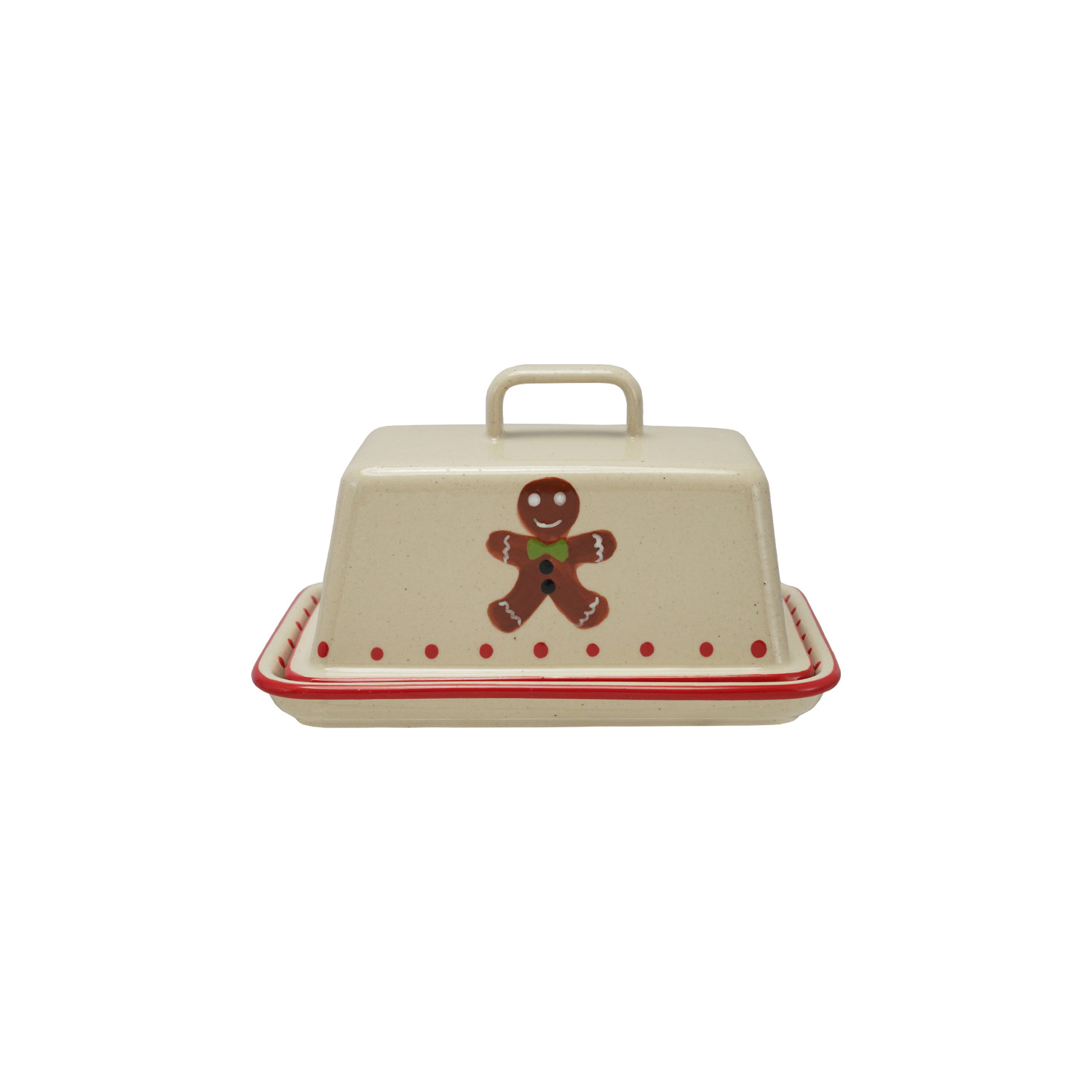 Catalog Name: 7-1/2"L x 5"W x 4-1/4"H Hand-Painted Stoneware Butter Dish w/ Gingerbread Man, Multi Color